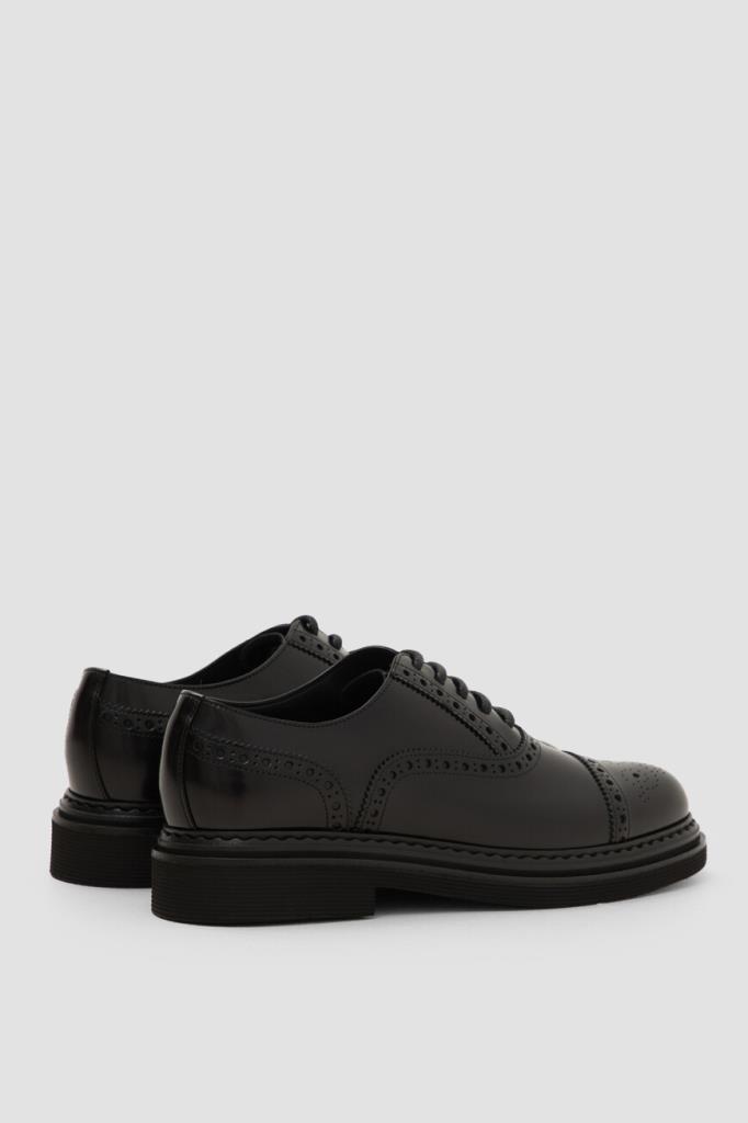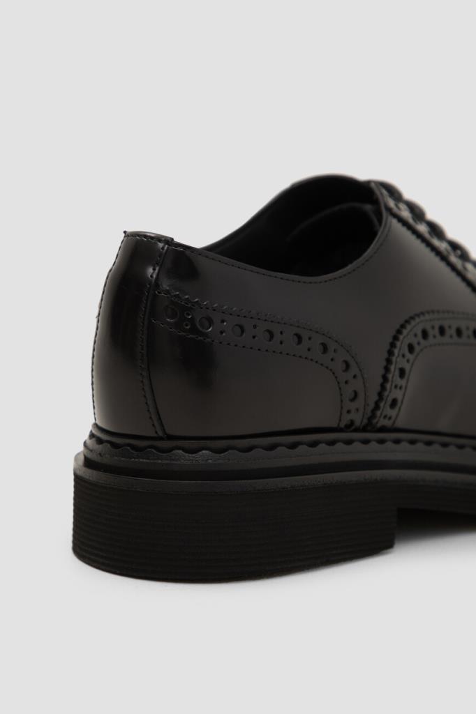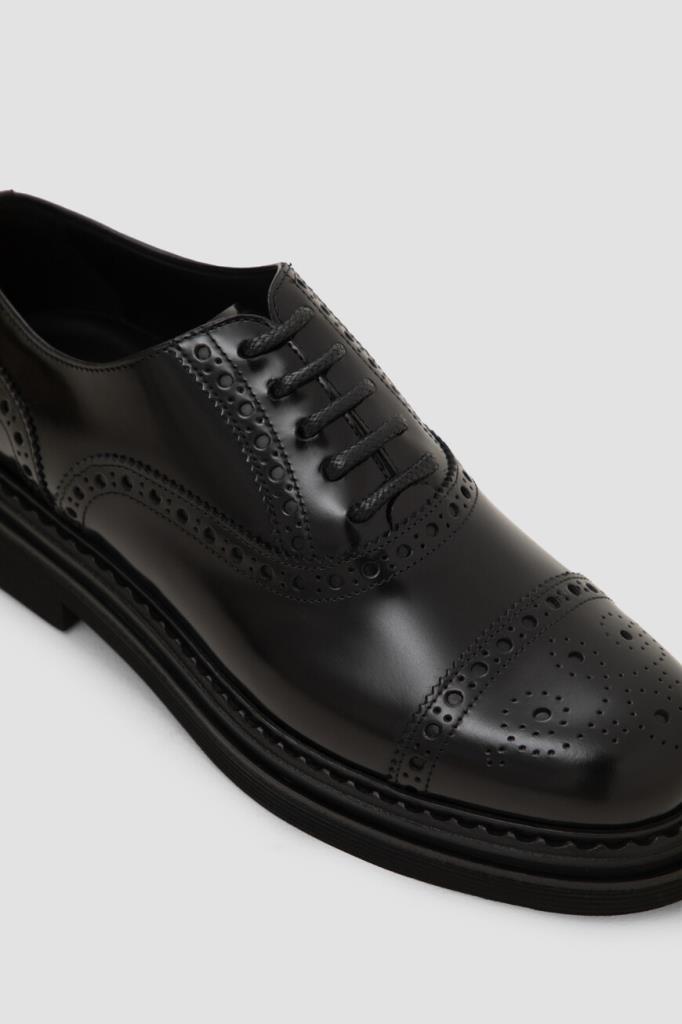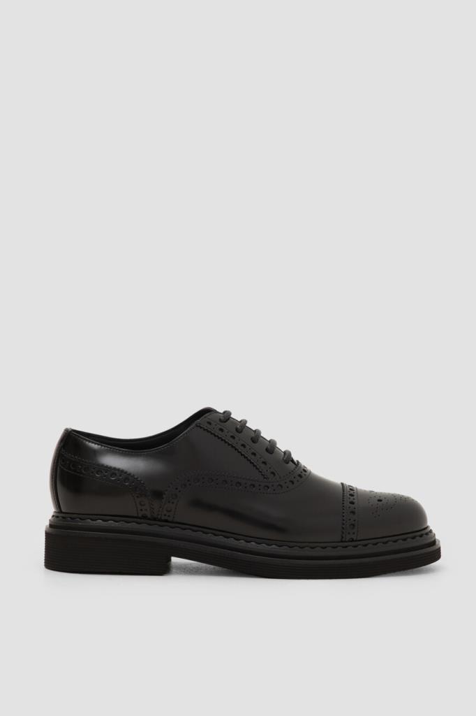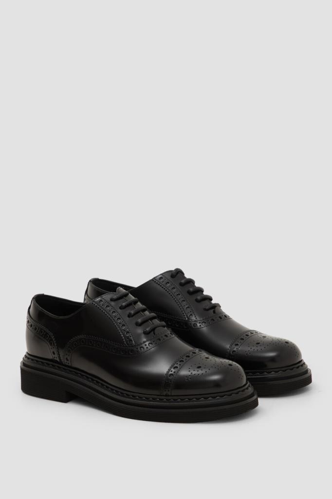 Кожаные оксфорды Day Classic на платформе от Dolce&Gabbana. Изделие выполнено из гладкой отшлифованной кожи телёнка чёрного цвета. Модель отличается округлым миндалевидным носком и характерным закрытым типом шнуровки, обеспечивающим идеальную посадку. Брогированные туфли станут идеальным завершением формального образа с брючным костюмом.