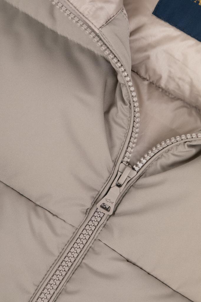 Стёганый жилет Paul&Shark с двумя прорезными карманами по бокам. Для изготовления модели прямого силуэта используется плотный высокопроизводительный материал Typhoon® Platinum, обеспечивающий максимальную водонепроницаемость, воздухопроницаемость и защиту от ветра. Фасон изделия предполагает высокий воротник-стойку и застёжку на встречную молнию с двумя брендированными бегунками. Принадлежность жилета Дому обозначена рельефным металлическим силуэтом акулы сзади на воротнике.