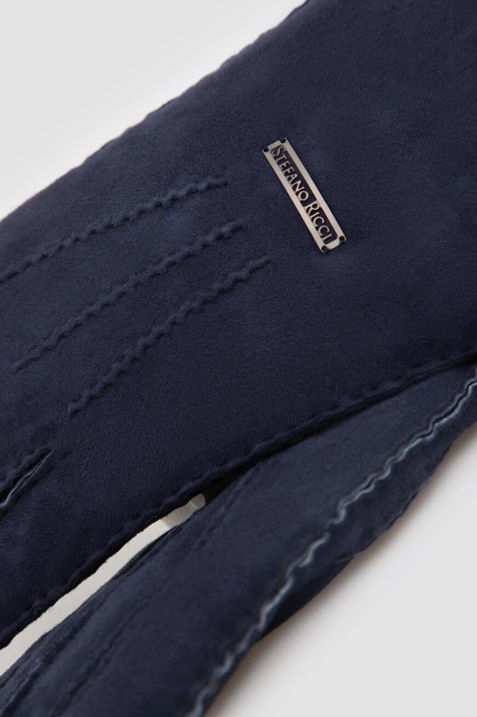 Перчатки Stefano Ricci выполнены вручную из мягкой бархатистой замши. Модель тёмно-синего цвета отличается минималистичным декором: рельефной дизайнерской строчкой в тон и серебристым металлическим лейблом с гравировкой на тыльной стороне. Аксессуар с прошивкой по краям станет идеальным дополнением Ваших образов.