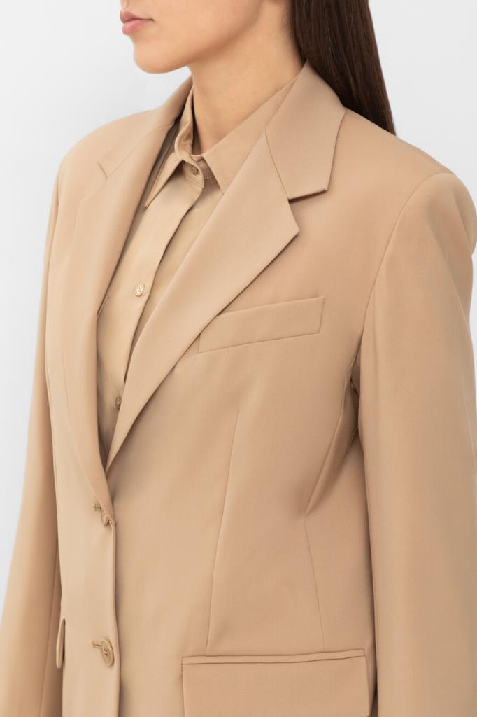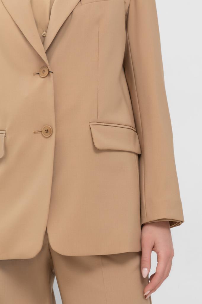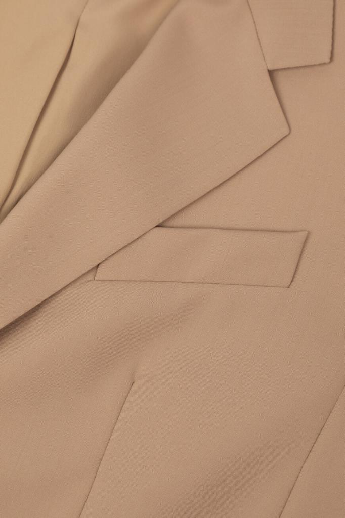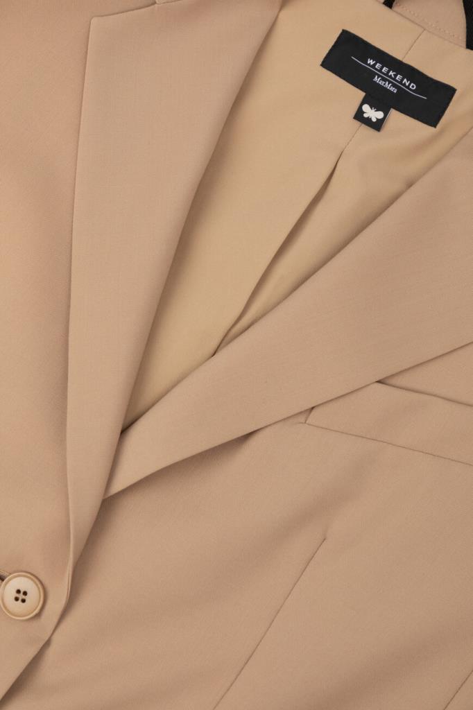 Однобортный блейзер Max Mara из мягкой вирджинской шерсти. Изделие бежевого оттенка является воплощением элегантности и качества. Модель имеет подкладку, центральный разрез сзади и две видимые пуговицы для застегивания. Женственный силуэт с лацканами и прорезными карманами поможет создать изысканный образ. Блейзер станет незаменимой вещью в вашем гардеробе и подойдет для создания деловых и повседневных ансамблей.