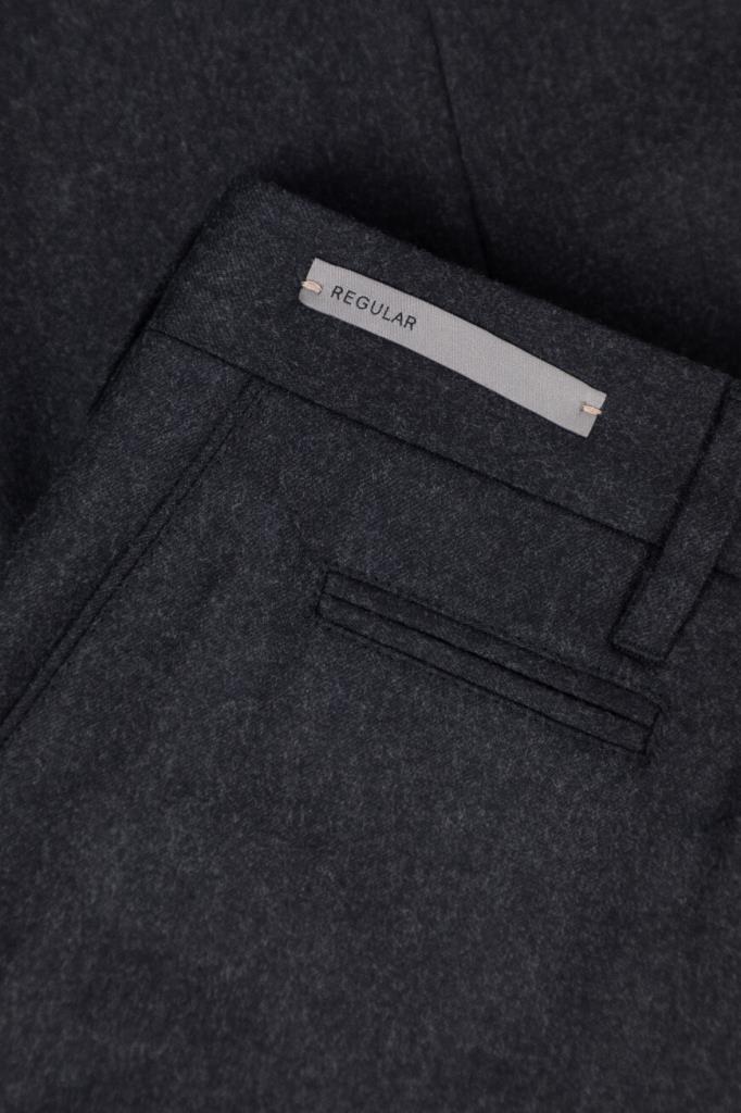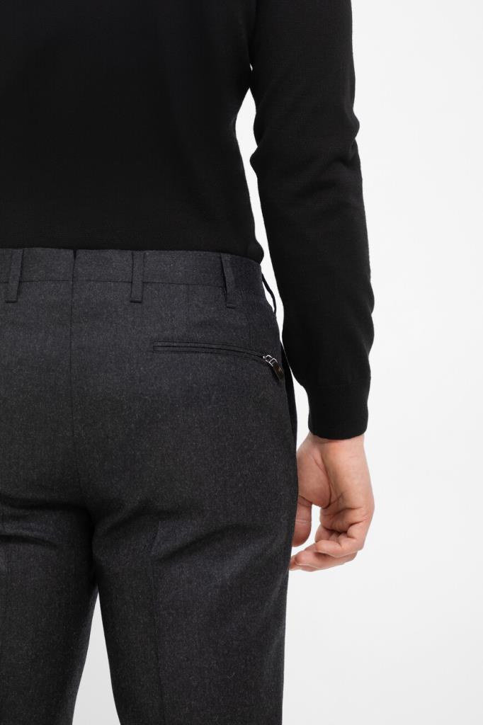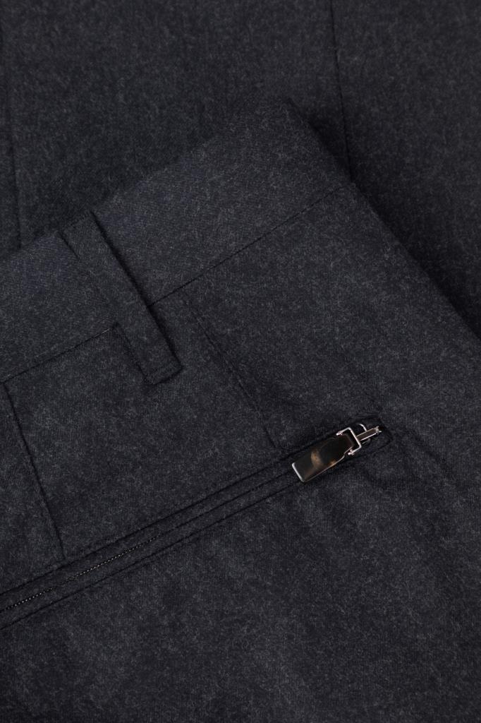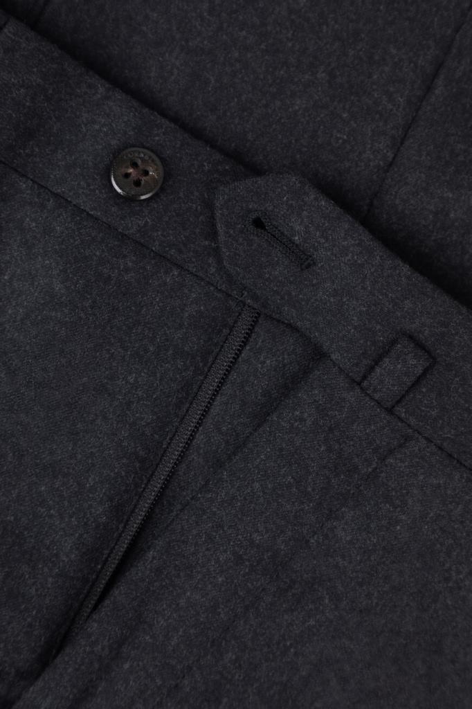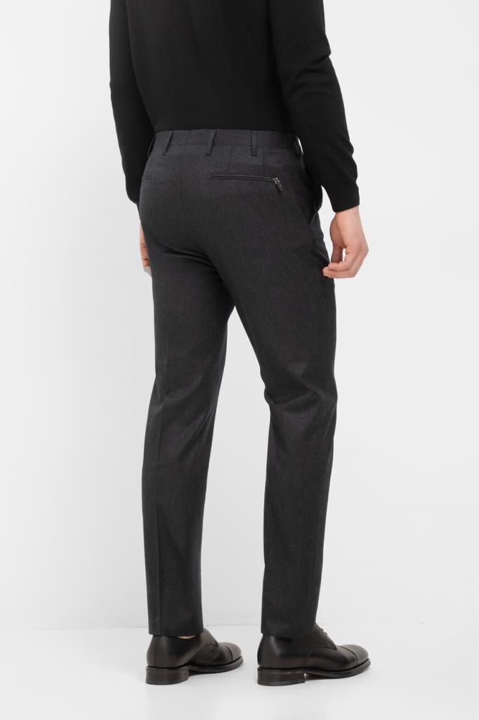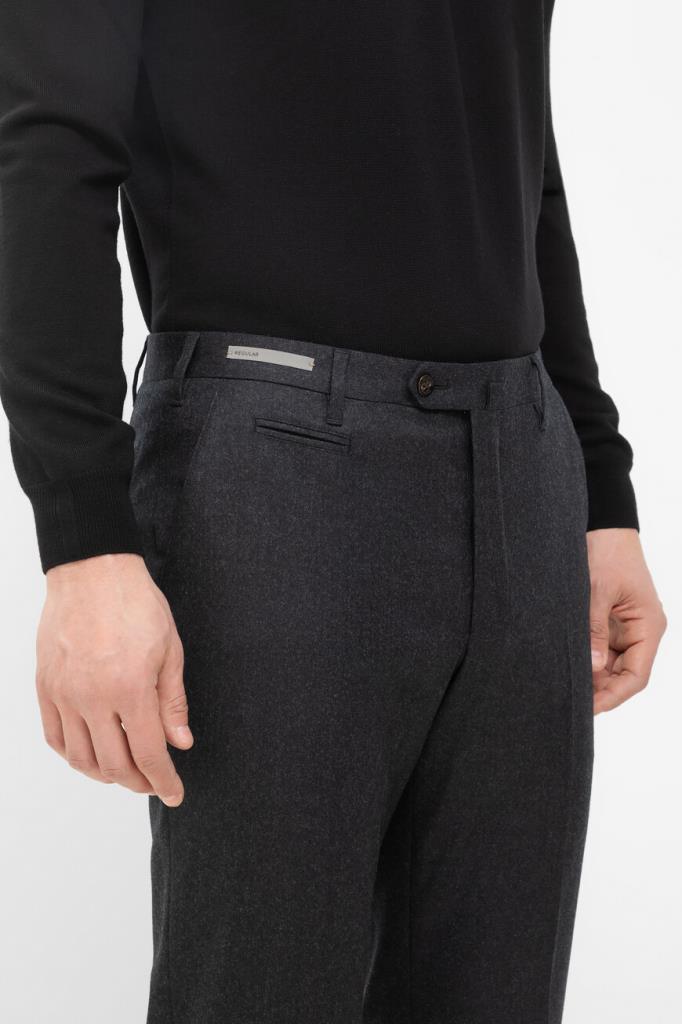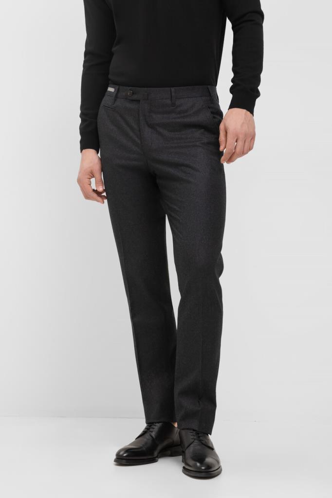 Шерстяные брюки Corneliani с пятью прорезными карманами. Модель с классическими стрелками окрашена в тёмно-серый оттенок и оснащена застёжкой на потайную молнию и роговую пуговицу с планкой. Изделие прямого силуэта без декора станет превосходным дополнением образов в стиле smart casual.