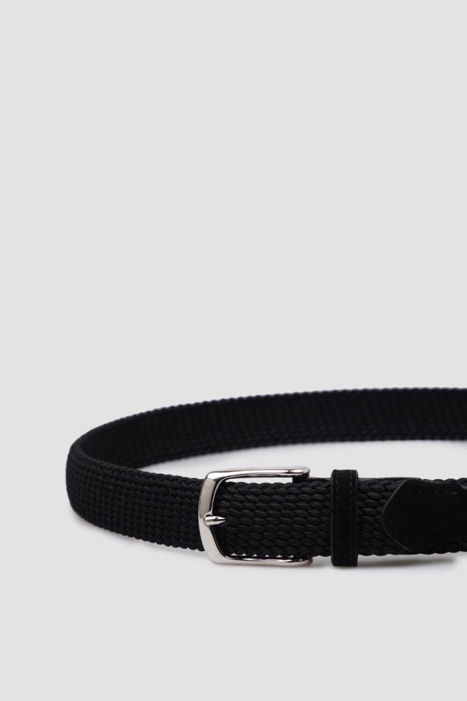 Практичный ремень Isaia легко регулируется по длине. Всё дело в материале: основа изделия выполнена из прочных текстильных шнуров чёрного цвета, при переплетении которых образуется фактурный геометрический узор. Кончики аксессуара укреплены вставками из бархатистой замши в тон. О принадлежности модели Дому деликатно напоминает гравировка в виде логотипа сбоку на серебристой металлической пряжке.