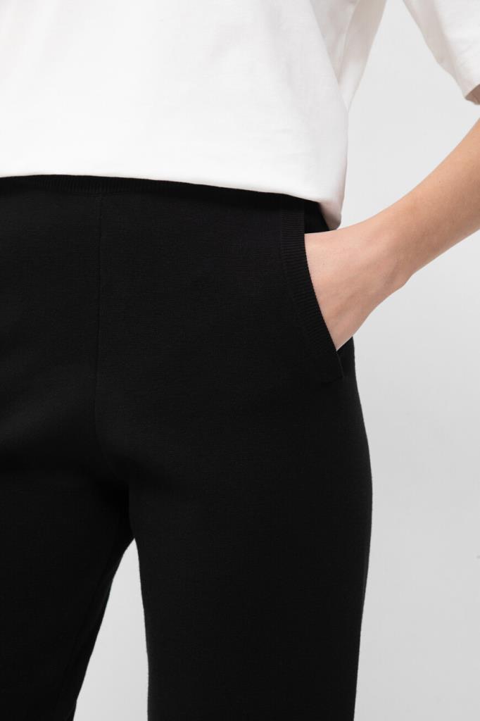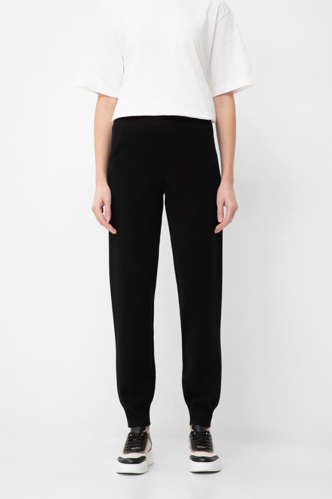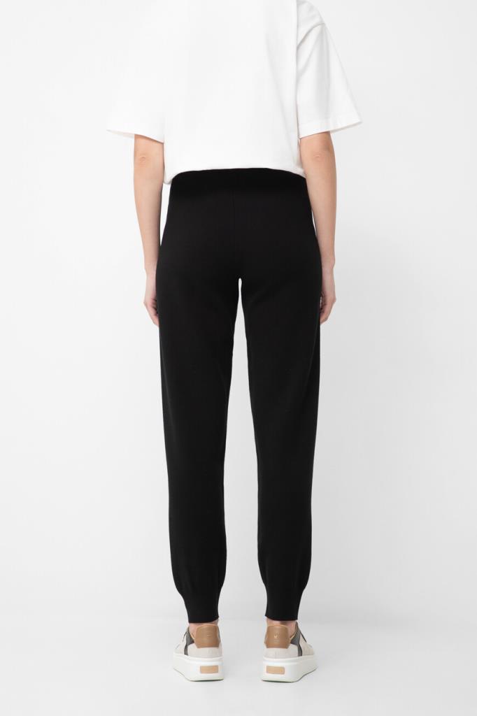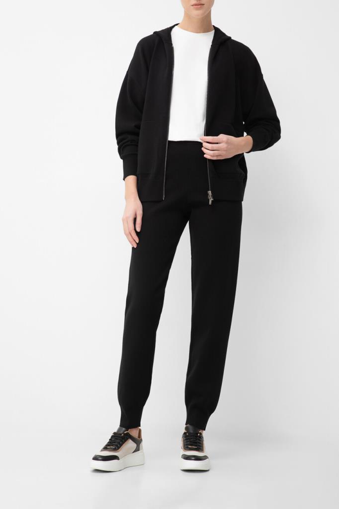 Брюки с широким эластичным поясом-резинкой от Max Mara. Изделие выполнено в спортивном стиле из мягкого трикотажа на основе шерсти, прочного нейлона и вискозного волокна. Модель чёрного цвета комфортно садится по фигуре благодаря манжетам-резинкам и сочетается с шерстяным худи со знаковым декором Дома.