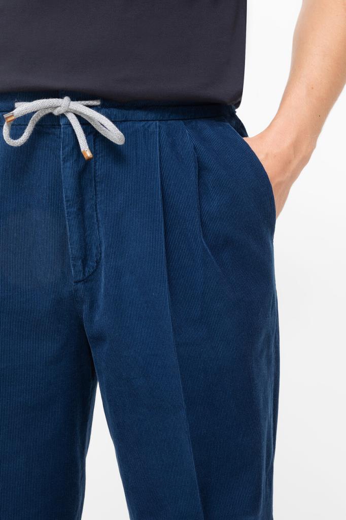 Вельветовые брюки BRUNELLO CUCINELLI выполнены в спортивном стиле. Для создания модели с текстурой в тонкую полоску используется мягкий хлопок. Фасон изделия предполагает прямой силуэт, классические стрелки и защипы сверху. Широкий эластичный пояс на завязках и застёжка на потайную молнию и крючки с планкой обеспечивают оптимальную посадку брюк по фигуре.