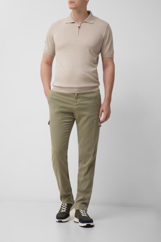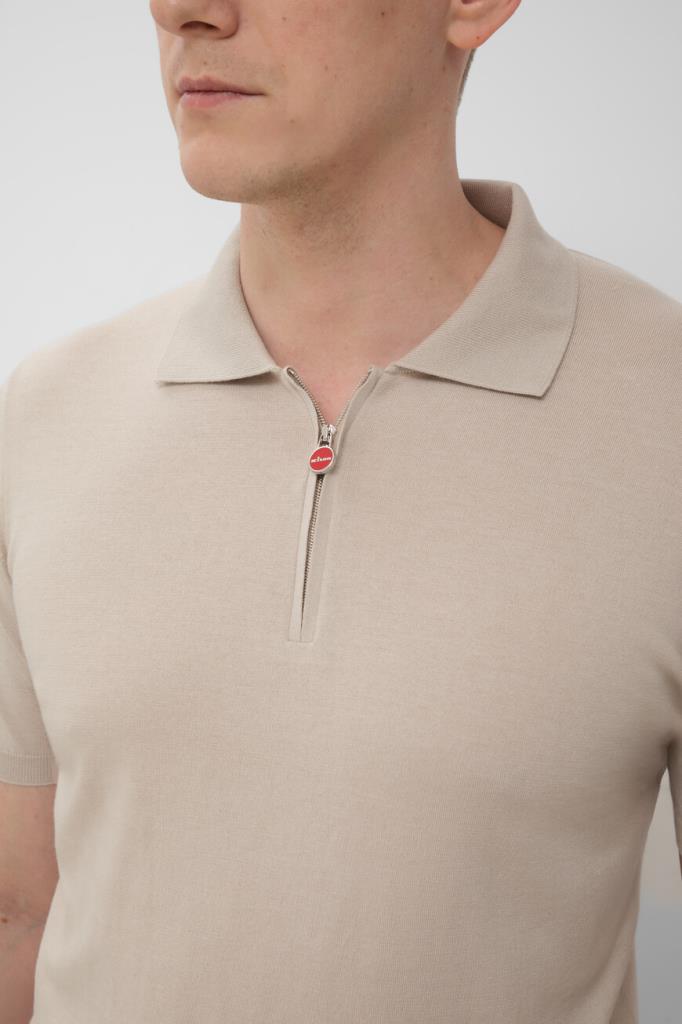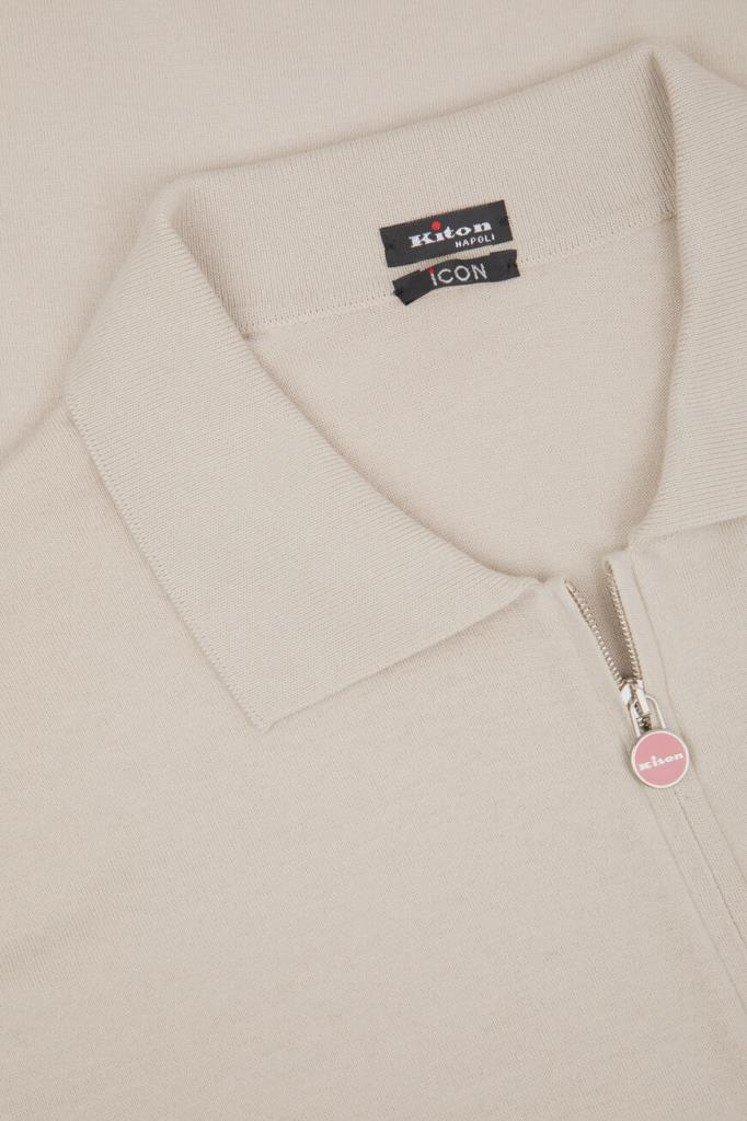 Поло Icon бежевого оттенка от бренда Kiton связано лицевой гладью. Фасон изделия из мягкого хлопкового трикотажа предполагает прямой силуэт и наличие застёжки-молнии с брендированным эмалированным пуллером сверху. Модель с короткими рукавами комфортно садится по фигуре благодаря широкому эластичному поясу и манжетам-резинкам и надолго сохраняет безупречный внешний вид.