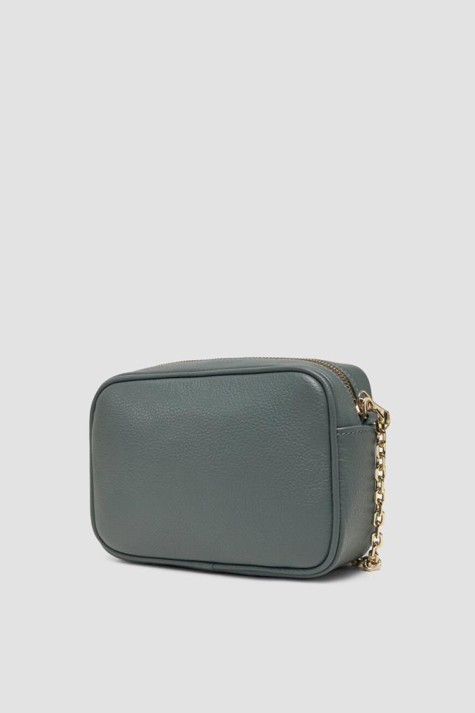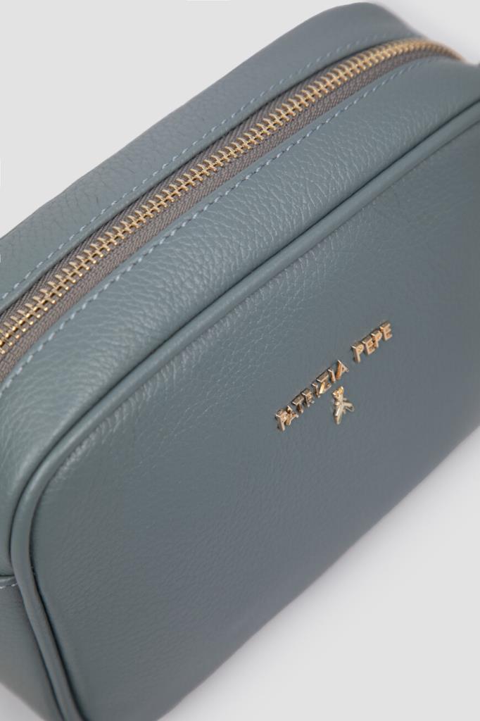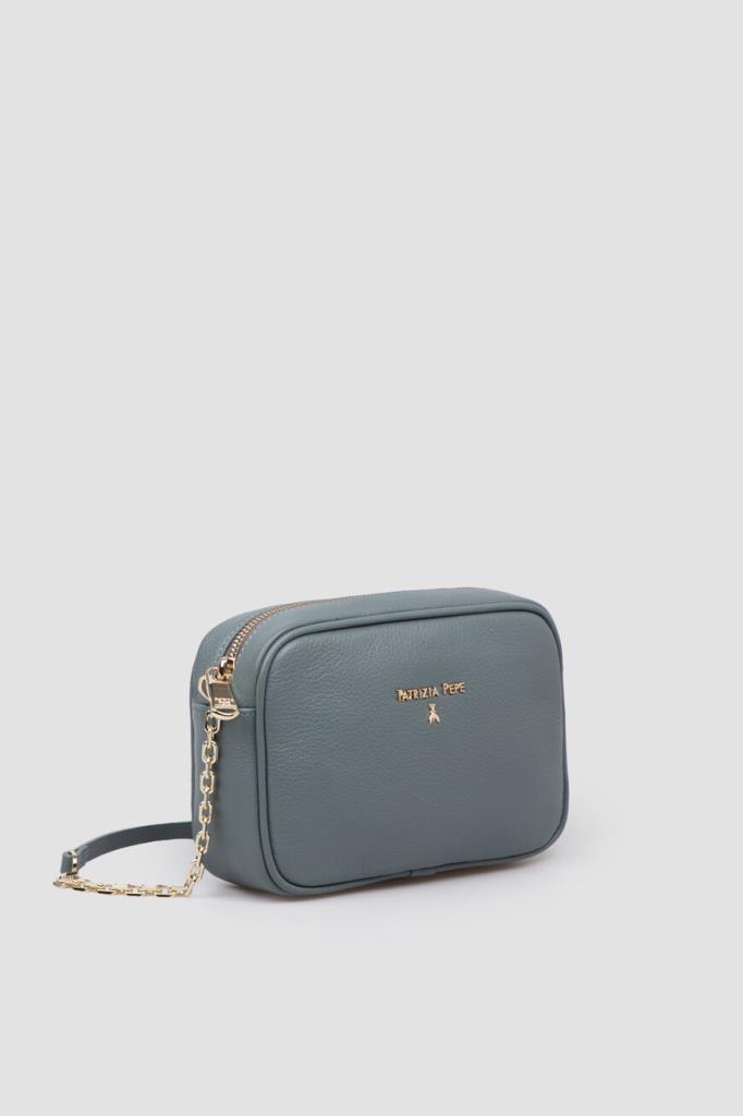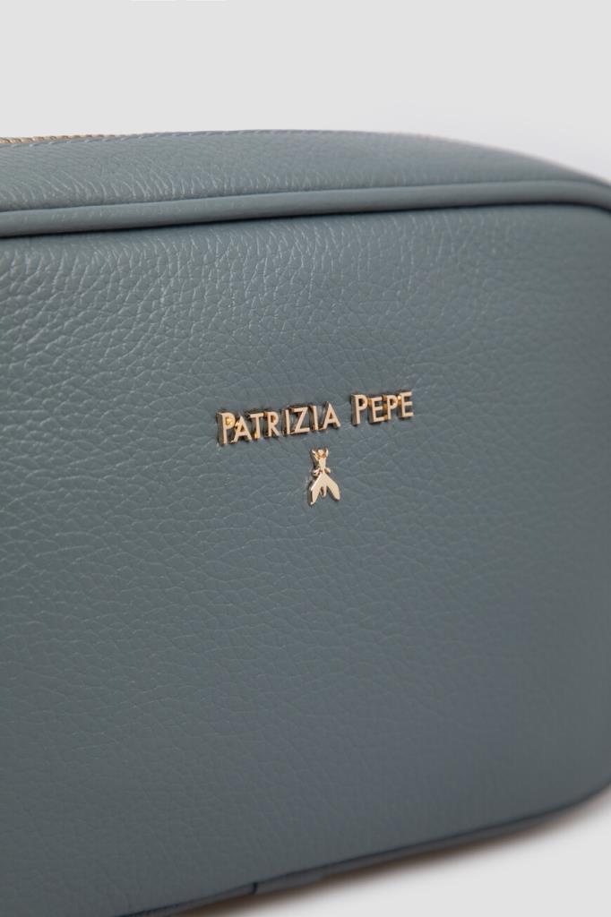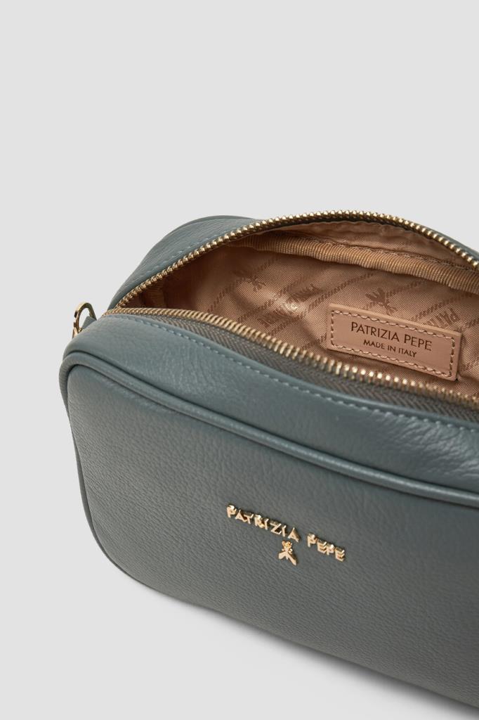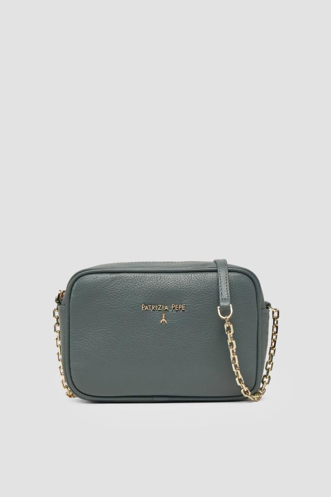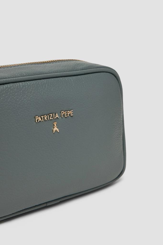 Компактная сумка Patrizia Pepe с мягкой структурой. Для создания модели на золотистой молнии выбрана кожа телёнка зелёного цвета с зернистой текстурой. На принадлежность аксессуара с одним внутренним отделением Дому указывают рельефные металлические логотип и символ Fly, размещённые на лицевой стенке.