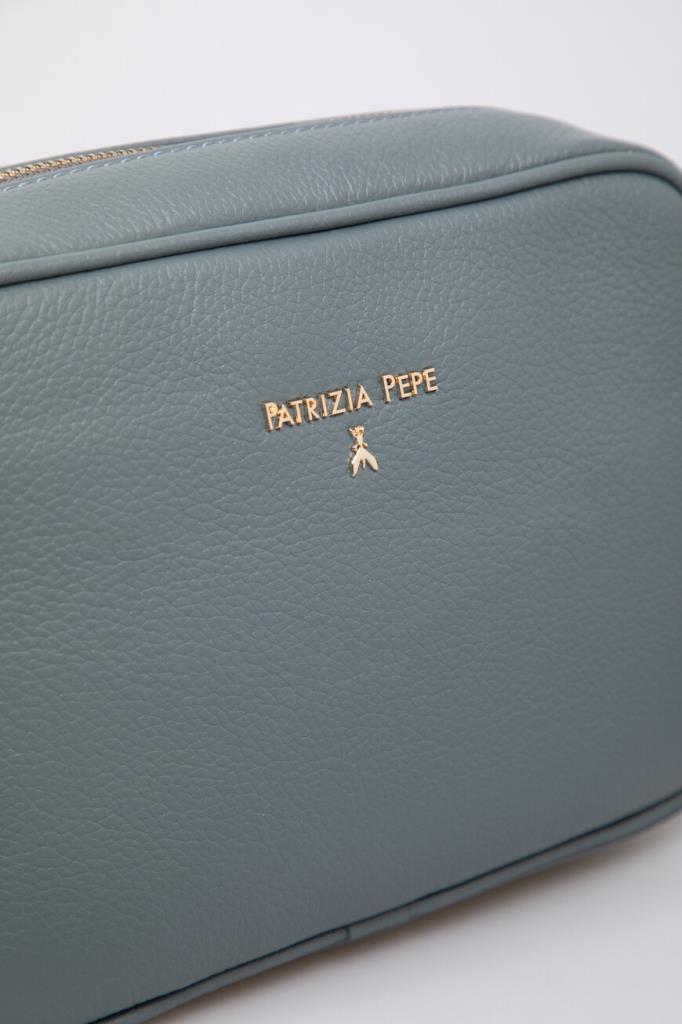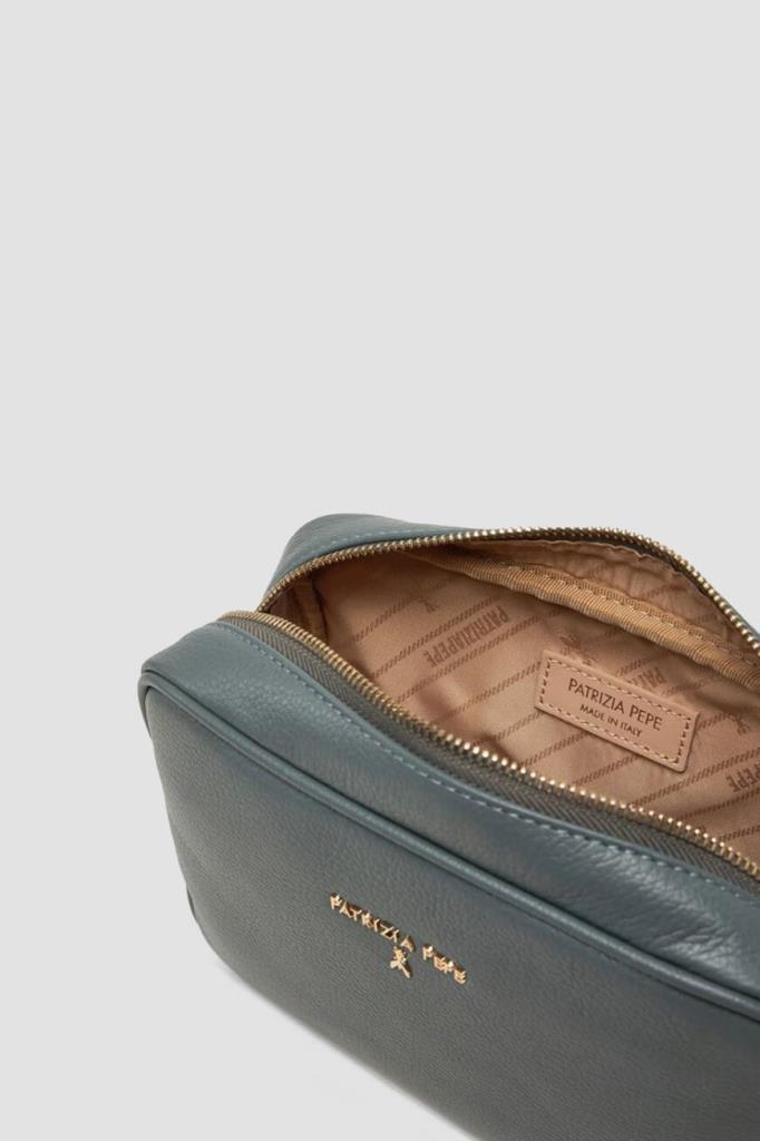 Сумка Patrizia Pepe зелёного оттенка подходит для любого случая. Для изготовления вместительного аксессуара используется мягкая кожа телёнка с зернистой текстурой. Принадлежность изделия на золотистой молнии Дому обозначена рельефными металлическими логотипом и символом Fly на лицевой стенке и брендированием на подкладке.