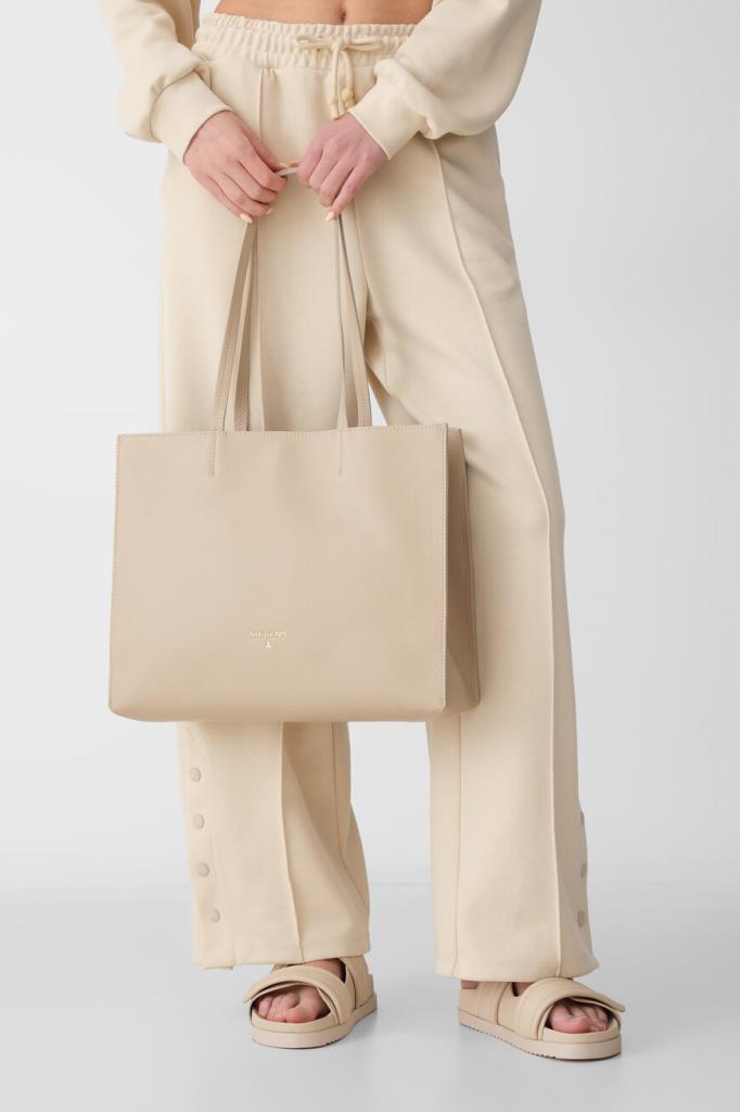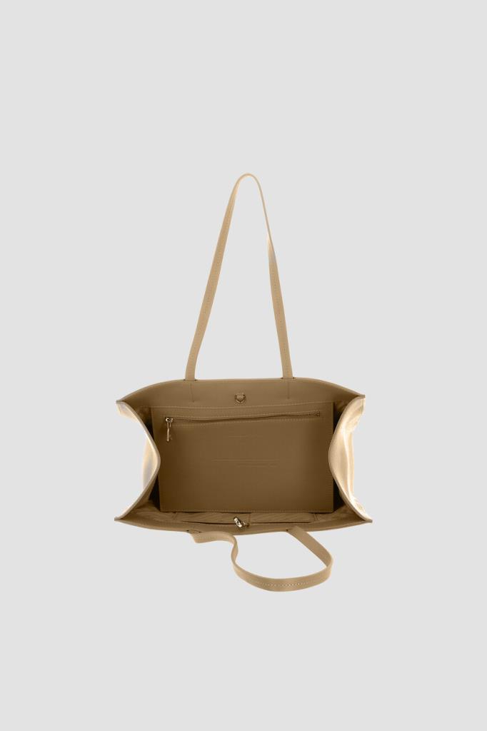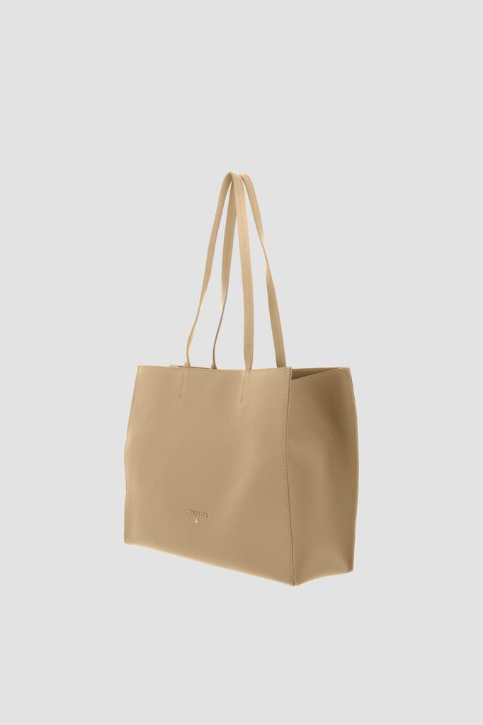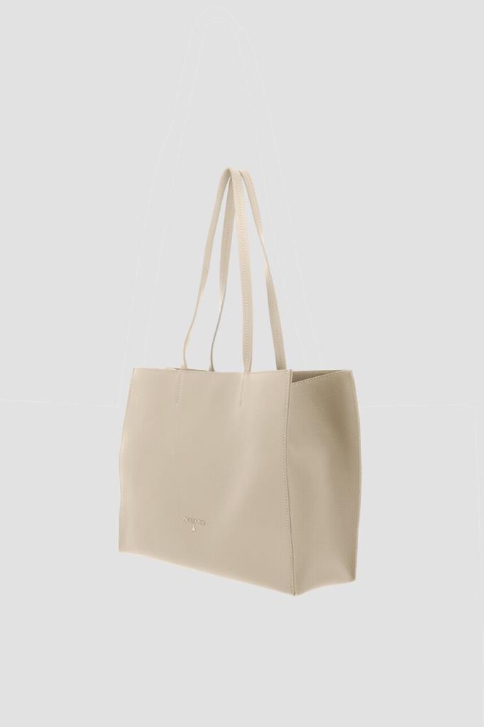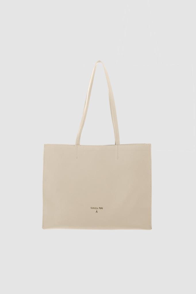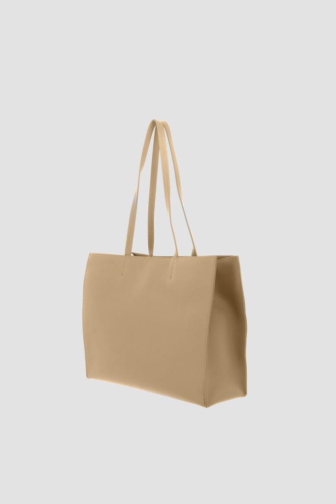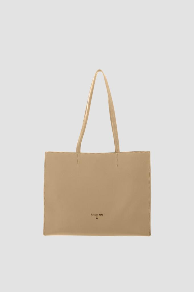 Сумка-шоппер от Patrizia Pepe подходит для переноски документов формата А4. Практичная модель из мягкой зернистой кожи телёнка окрашена в нейтральный бежевый оттенок и декорирована небольшими рельефными надписью-логотипом и символом Fly, размещёнными на лицевой стенке. Внутри, помимо основного просторного отделения на брендированном карабине, расположены два плоских кармана и брендированный карман на молнии золотого оттенка. Изделие станет универсальным завершением повседневных ансамблей.