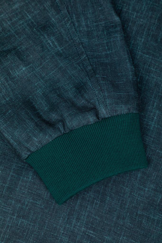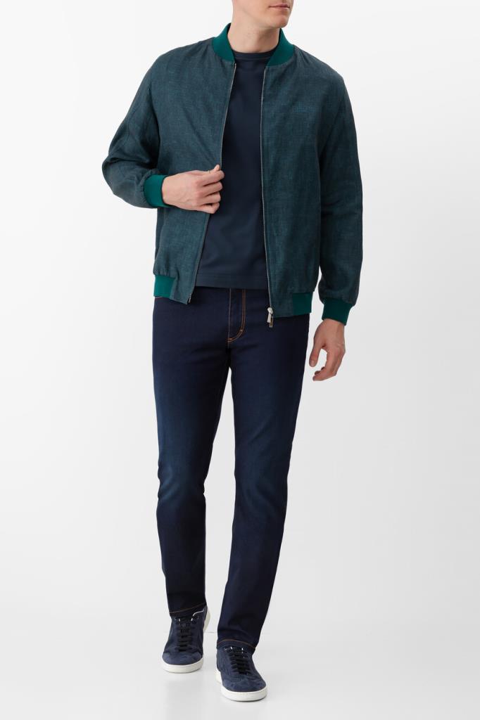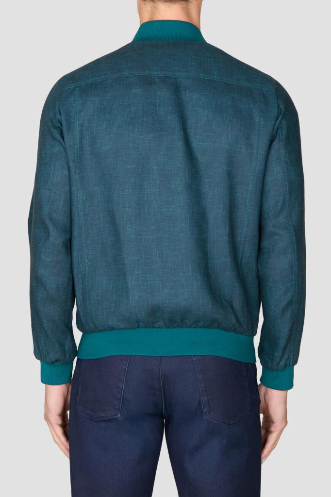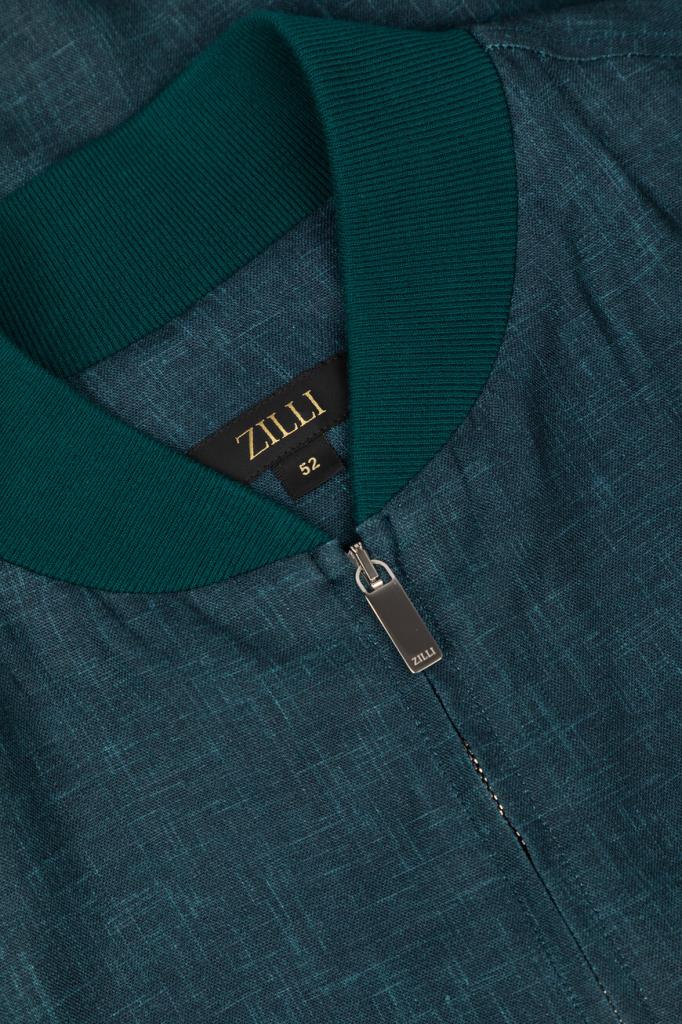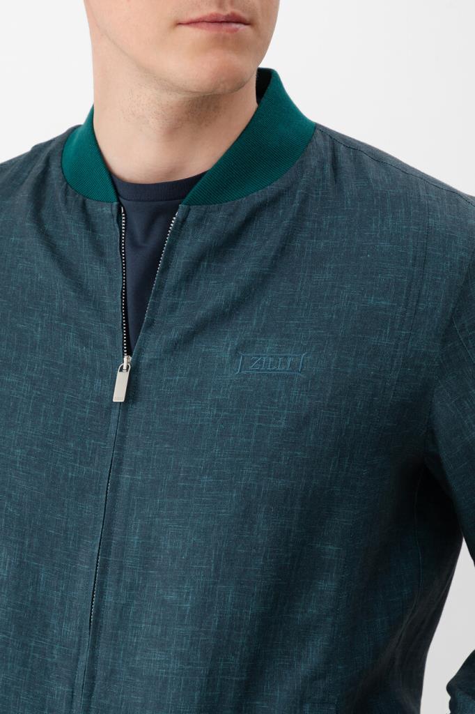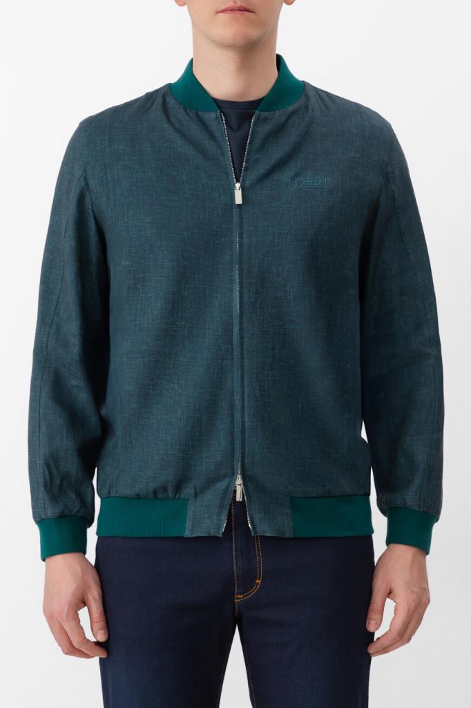 Малахитовый бомбер от ZILLI с неброской знаковой вышивкой. Для создания изделия на серебристой встречной молнии с двумя брендированными пуллерами используется мягкий лён. Слева на груди размещена рамка-прямоугольник со вписанным в него лого Дома в тон. Дополнительный комфорт и удобство в носке обеспечивают широкий эластичный пояс и манжеты-резинки на несколько тонов светлее основы.