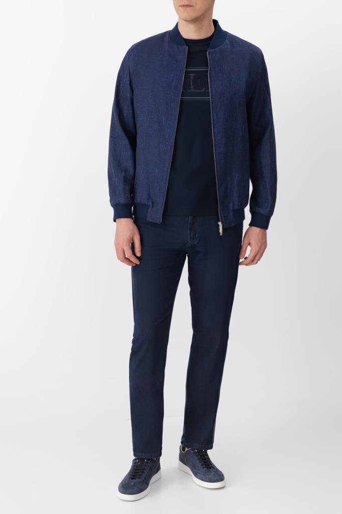 Прямой бомбер от ZILLI с двумя прорезными карманами по бокам. Повседневная модель, изготовленная из мягкого льна, интересна наличием вышитой рамки-прямоугольника со вписанным в него лого Дома слева на груди и застёжкой на серебристую молнию с двумя брендированными пуллерами. Изделие с невысоким воротником-стойкой станет превосходным завершением сезонных комплектов.