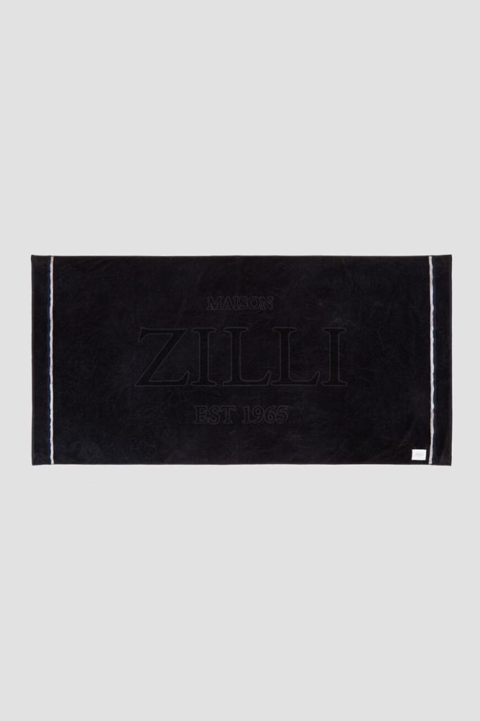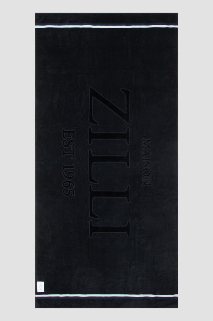 Хлопковое полотенце тёмно-синего цвета от Zilli. Плотные волокна материала не теряют форму под воздействием температур, поэтому незаменимый сезонный аксессуар сохраняет первоначальный вид даже после многократных стирок. На принадлежность изделия Дому указывают крупные надпись «Maison est 1965» и логотип на лицевой стенке.