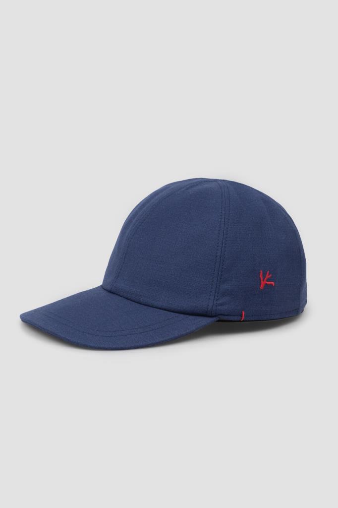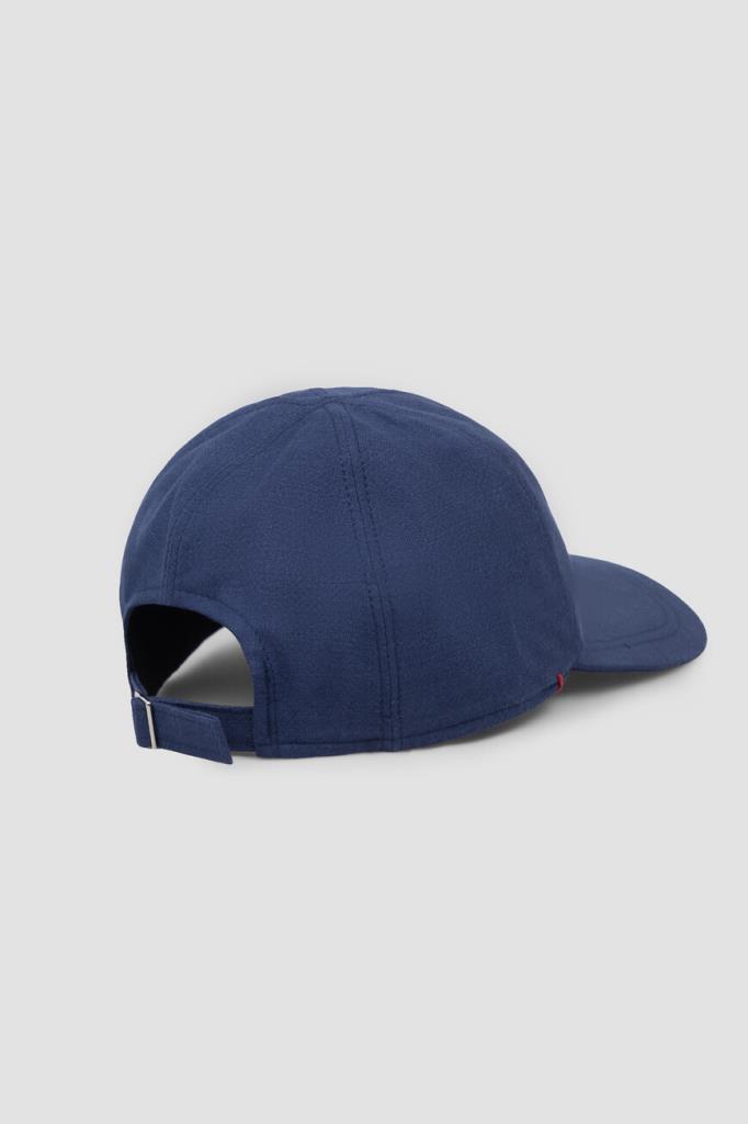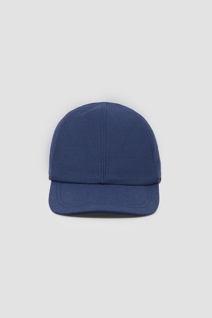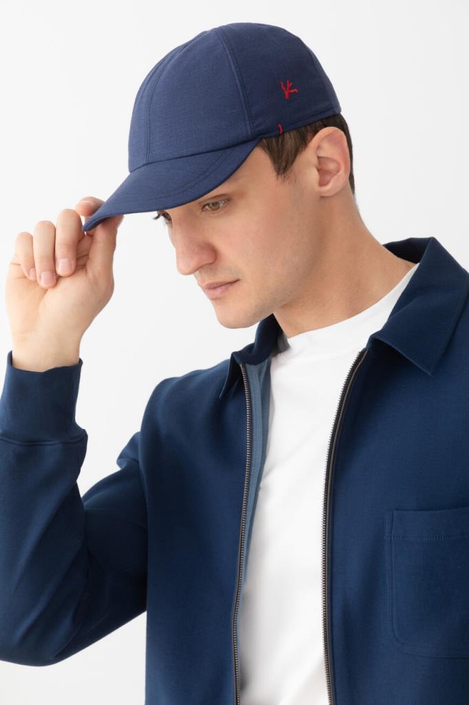 Трикотажная бейсболка с вышитой знаковой символикой бренда ISAIA. Для производства изделия выбраны натуральная шерсть, лён, гладкий шёлк и прочный нейлон глубокого синего цвета. По бокам размещены ярко-красные стежки, отсылающие к Дому, а слева также присутствует коралловая ветвь. Комфортную плотную посадку аксессуара на голове обеспечивает регулирующий ремешок с серебристой металлической пряжкой.