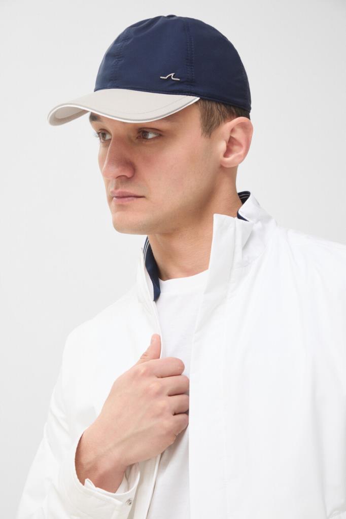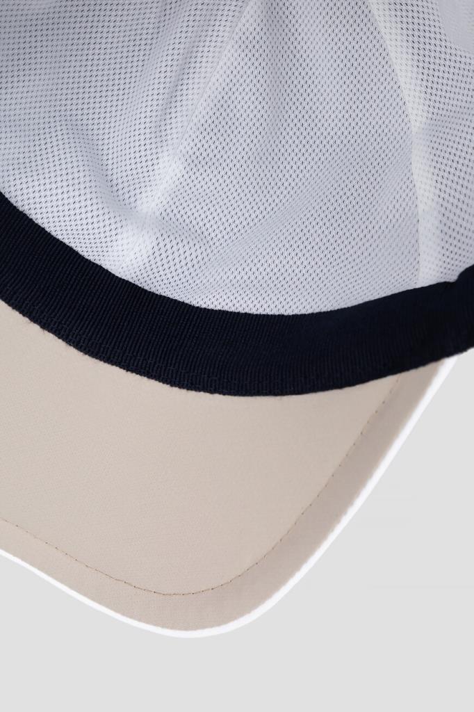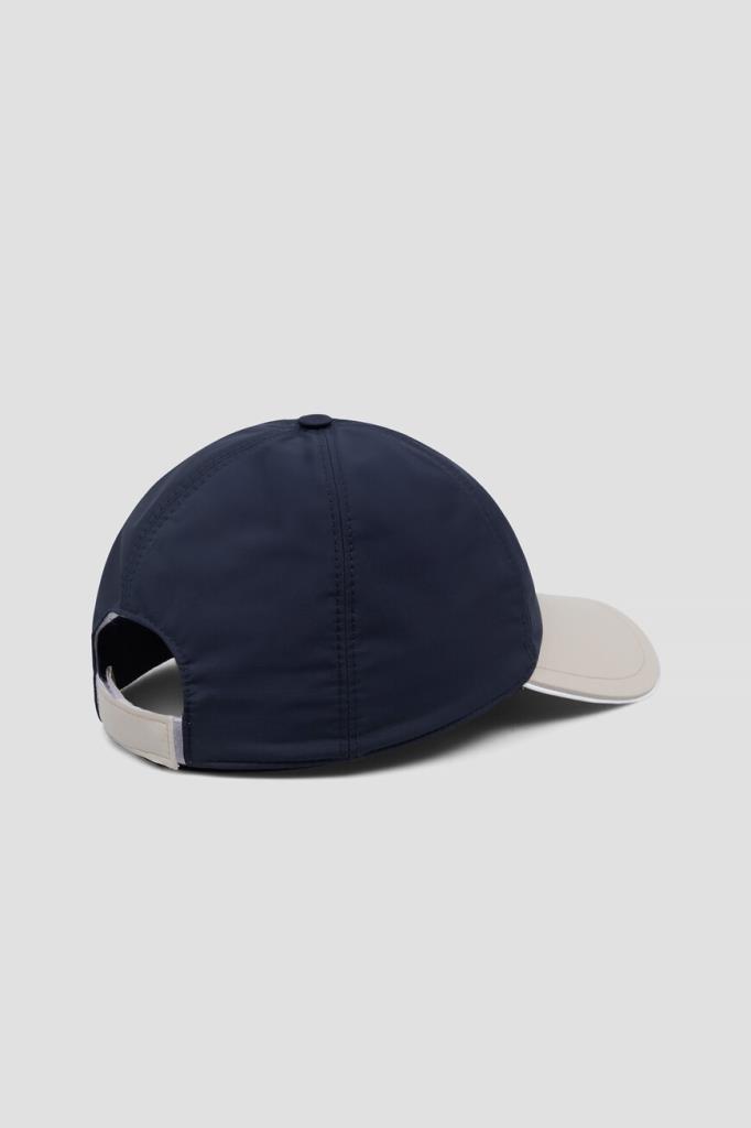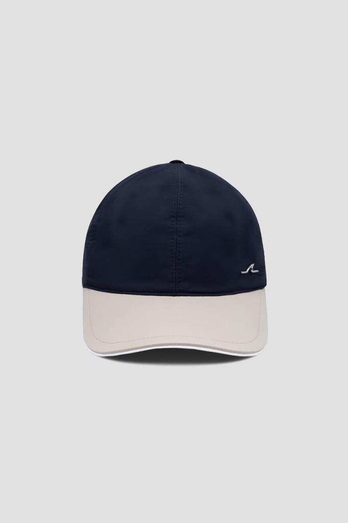 Двухцветная бейсболка Paul&Shark с регулирующим ремешком-велькро. Для пошива традиционной шестиклинки выбрана непромокаемая и непродуваемая ткань Typhoon® Pertex в тёмно-синем и светло-бежевом тонах. Отличительными особенностями изделия стали дышащая сетчатая подкладка и наличие минималистичного знакового декора - рельефной металлической детали в виде острого плавника акулы Shark fin сбоку на тулье. Широкий изогнутый козырёк обрамлён белым кантом.