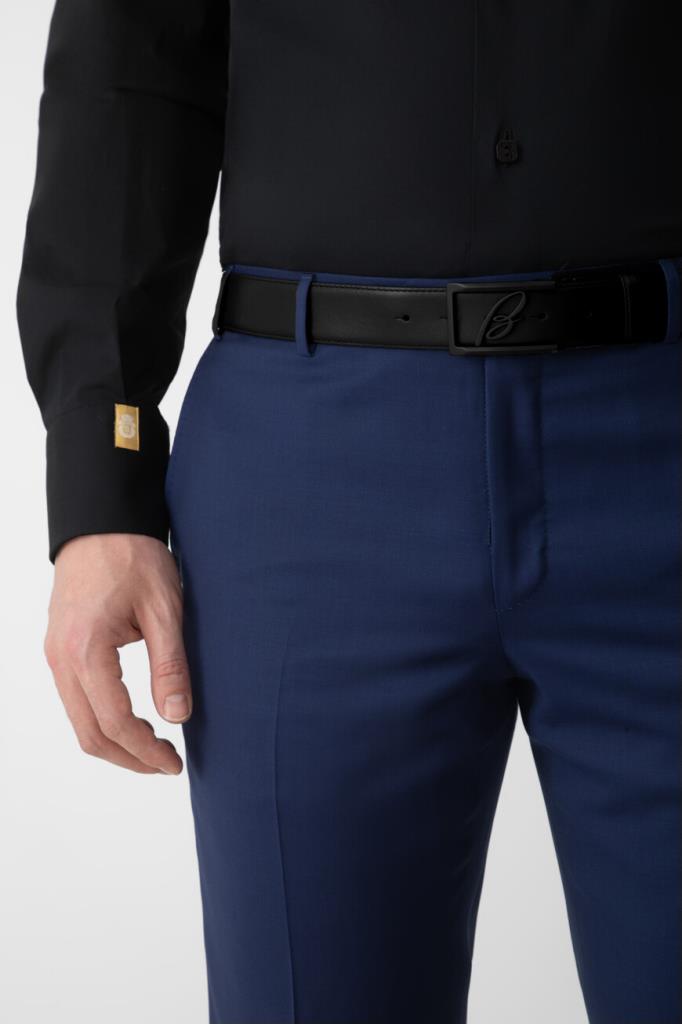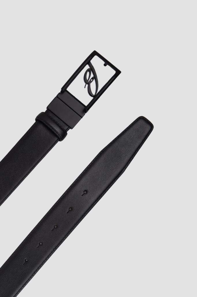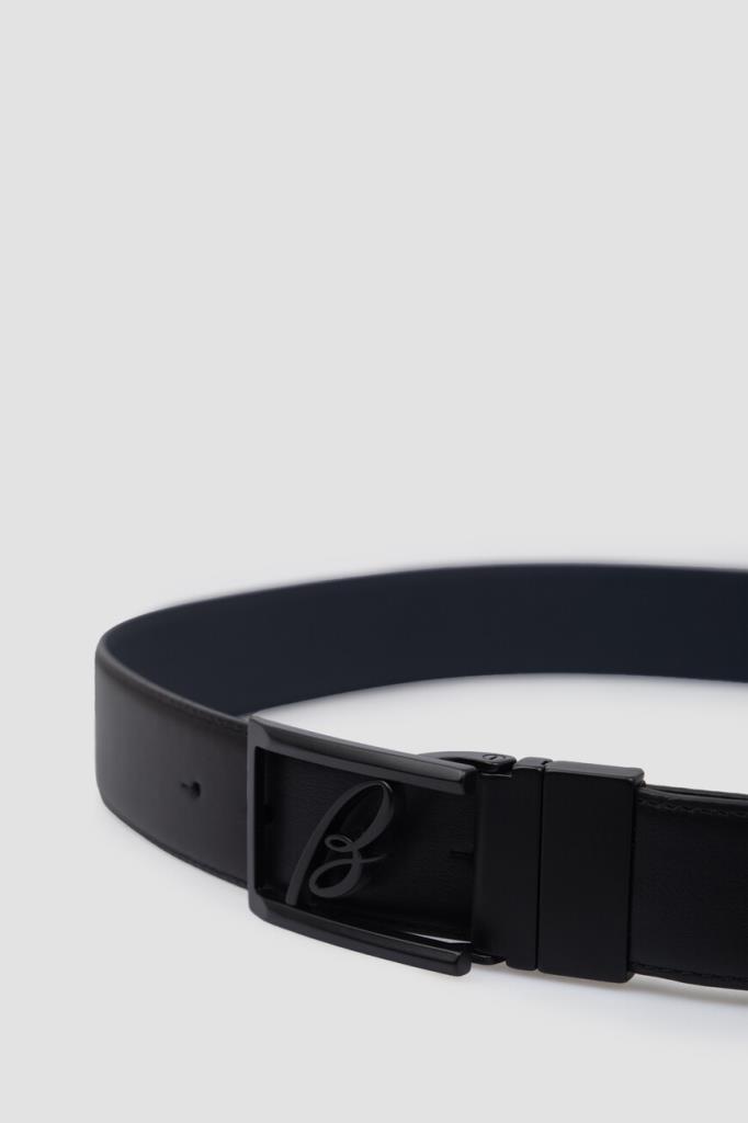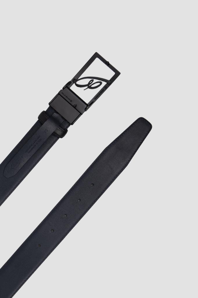 Практичный двусторонний ремень от Brioni. Широкая модель изготовлена из мягкой телячьей кожи базового чёрного и тёмно-синего оттенков. Отличительной особенностью аксессуара стала культовая реверсивная пряжка B-Logo, выполненная в виде крупной дизайнерской литеры «B», помещённой в прямоугольник.