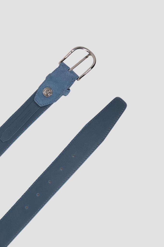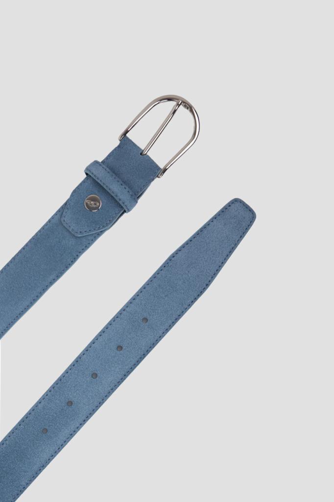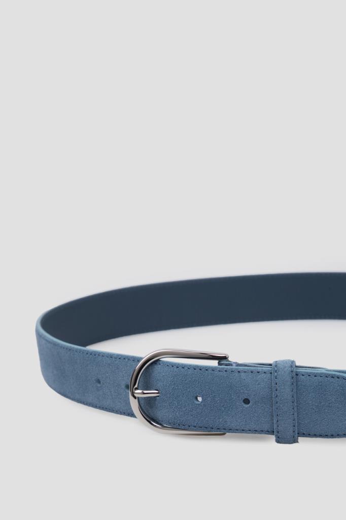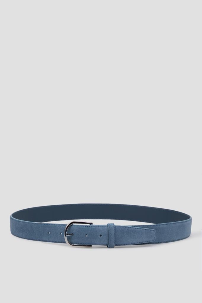 Широкий ремень Brioni не придётся менять в каждом сезоне. Для производства классического аксессуара используется нежная, но прочная замша синего оттенка с бархатистой фактурой. Объём изделия регулируется закруглённой фигурной пряжкой из серебристого сплава. Атрибутом Дома является минималистичная знаковая литера «B» на заклёпке.