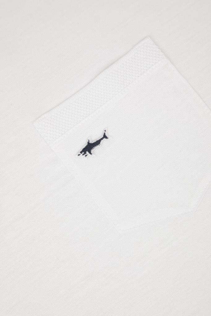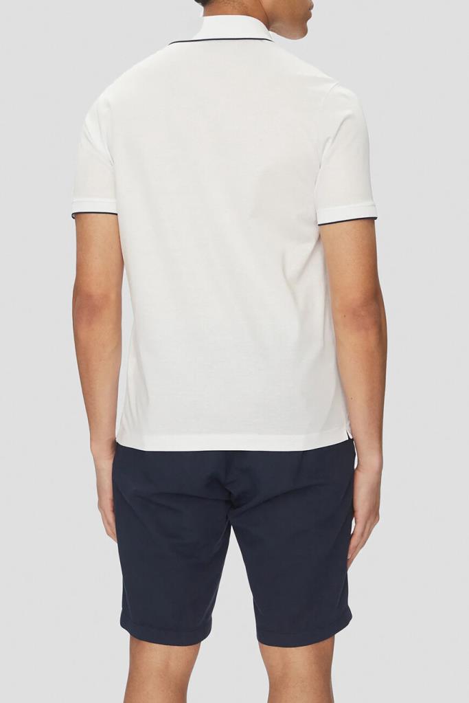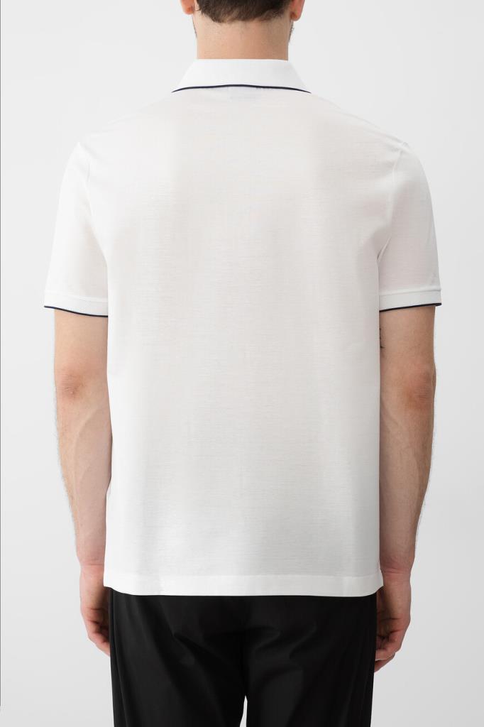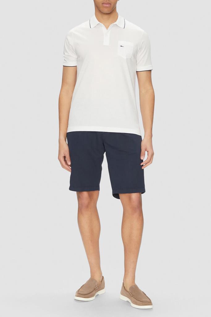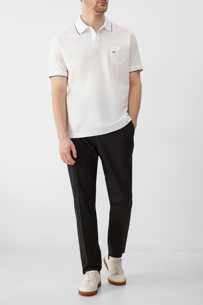 Поло белого цвета от бренда Paul&Shark. Модель прямого силуэта сшита из мягкого хлопкового джерси с гладкой текстурой. Отложной воротник и манжеты рукавов декорированы кантом, а на нагрудном накладном кармане слева размещена вышитая знаковая символика Дома - изображение акулы.