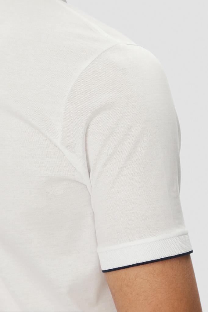 Поло белого цвета от бренда Paul&Shark. Модель прямого силуэта сшита из мягкого хлопкового джерси с гладкой текстурой. Отложной воротник и манжеты рукавов декорированы кантом, а на нагрудном накладном кармане слева размещена вышитая знаковая символика Дома - изображение акулы.
