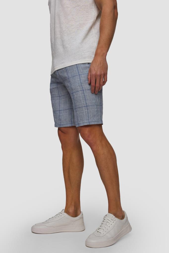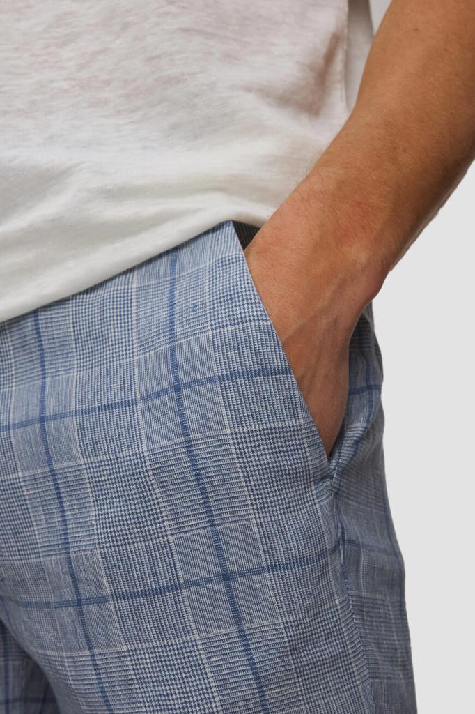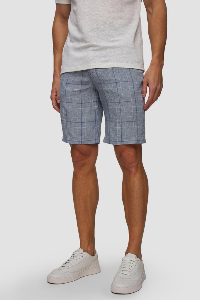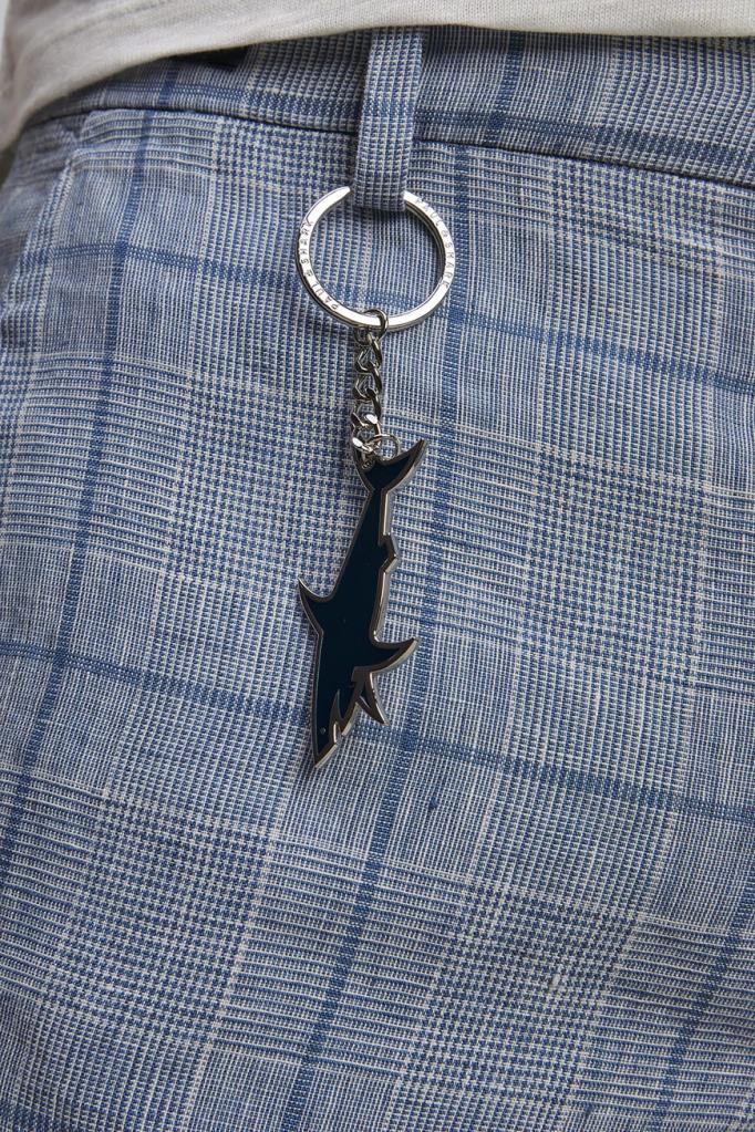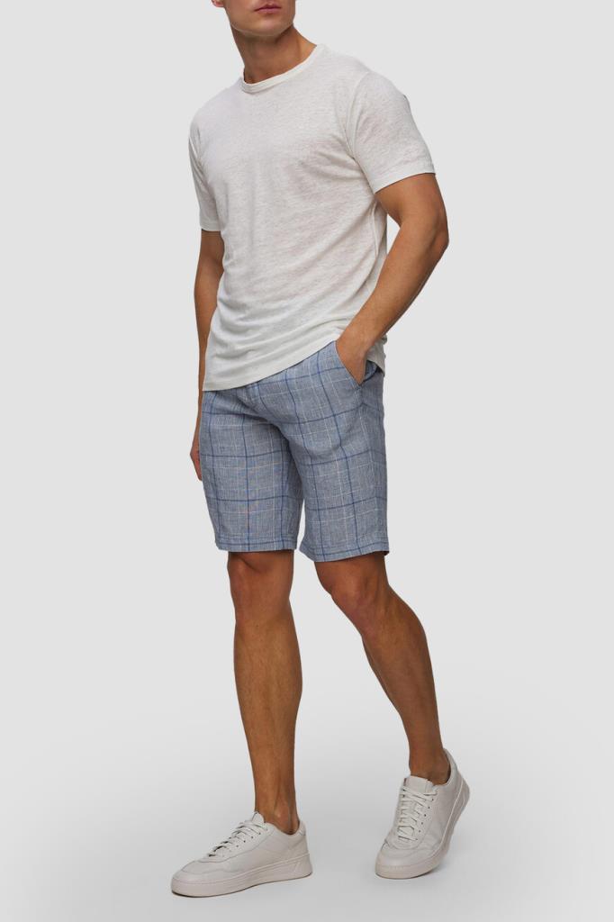 Короткие бермуды Paul&Shark выполнены в белом и голубых тонах. Модель изготовлена из лёгкого льна, который обеспечивает воздухопроницаемость и комфорт в тёплые дни, и покрыта геометрическим мотивом в крупную клетку. О принадлежности изделия Дому напоминает миниатюрная вышивка в виде силуэта акулы над правым задним карманом. В комплекте также - крупный фирменный брелок с акулой.