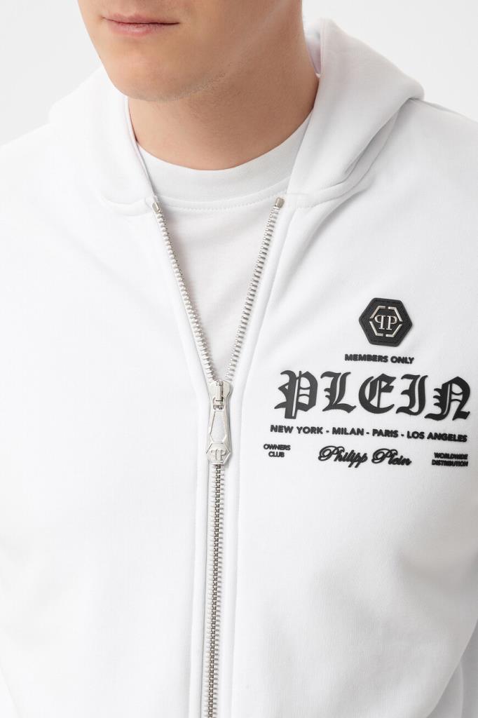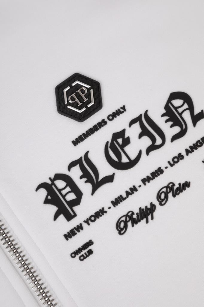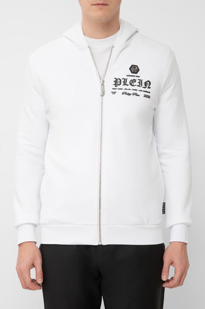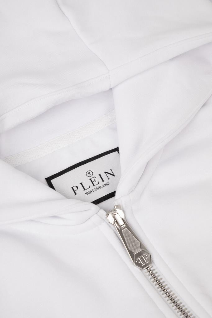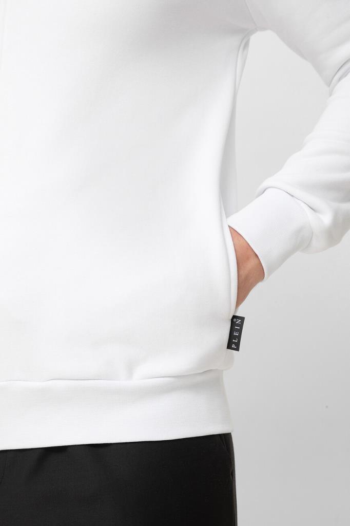 Белая толстовка Philipp Plein выполнена из хлопка с добавлением полиэстера. Универсальный цвет, простой крой и минималистичный декор в виде логотипа на груди позволят создать стильные образы на каждый день. Составьте расслабленный лук с белыми брюками и сникерами Trainer Predator от Philipp Plein.