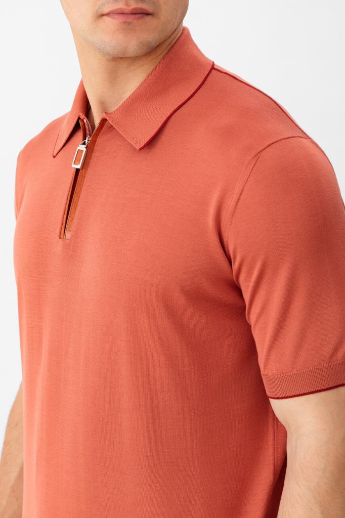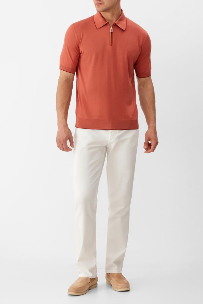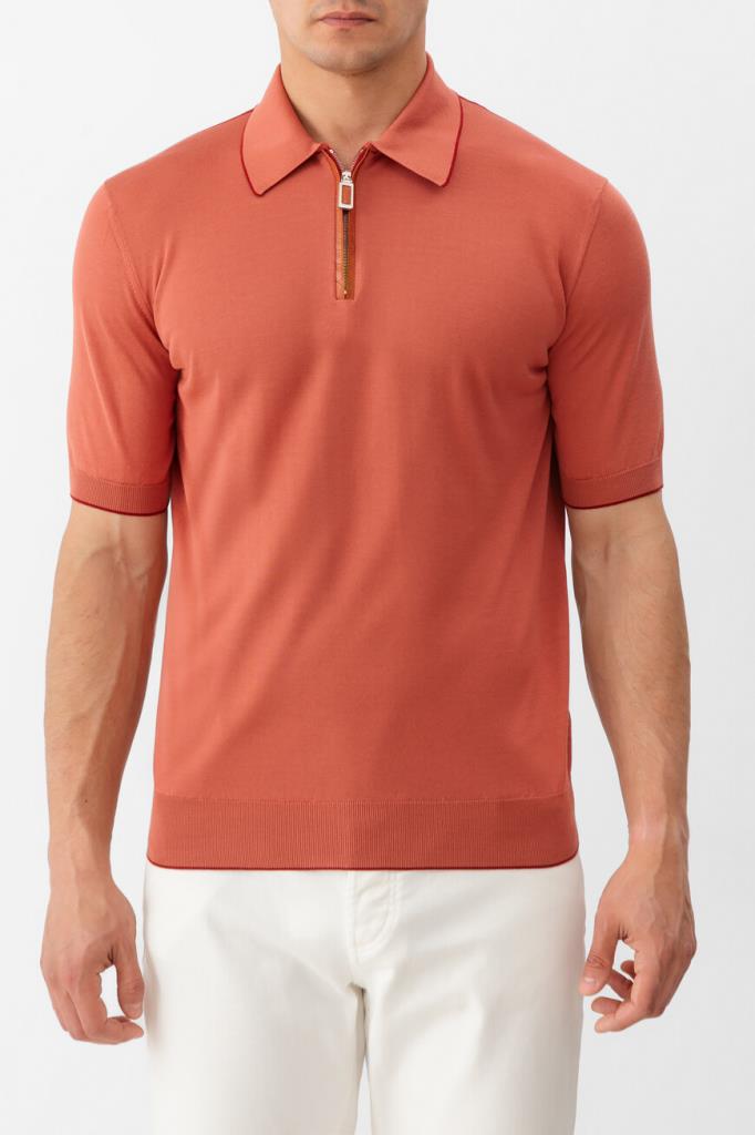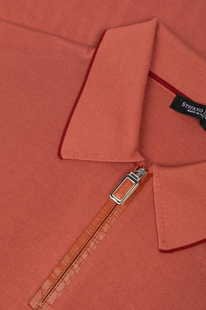 Шелковое поло Stefano Ricci станет основой Ваших повседневных комплектов. Фасон изделия кораллового цвета предполагает наличие коротких рукавов и застёжки-молнии с пуллером из металла с гальваническим покрытием. Планка застёжки выделана фактурной кожей крокодила в тон. Отложной воротник, манжеты рукавов и широкий пояс оформлены резинкой для оптимальной посадки и обрамлены узким кантом на несколько тонов темнее основы.