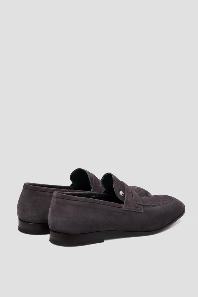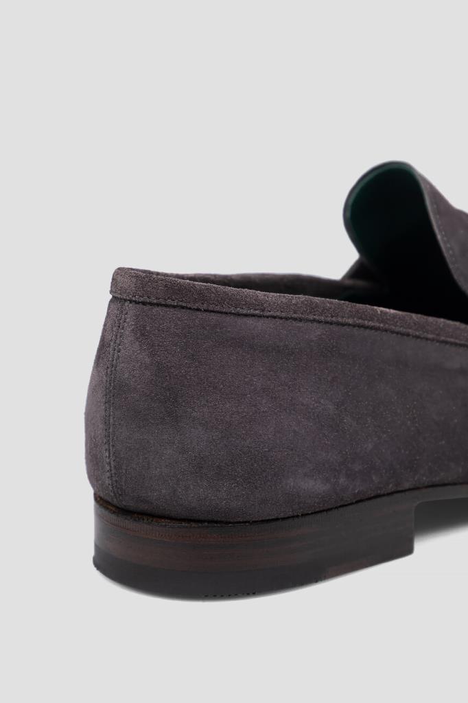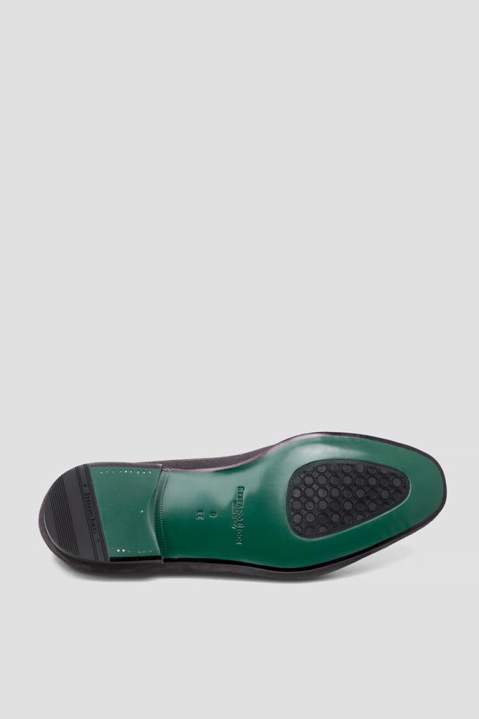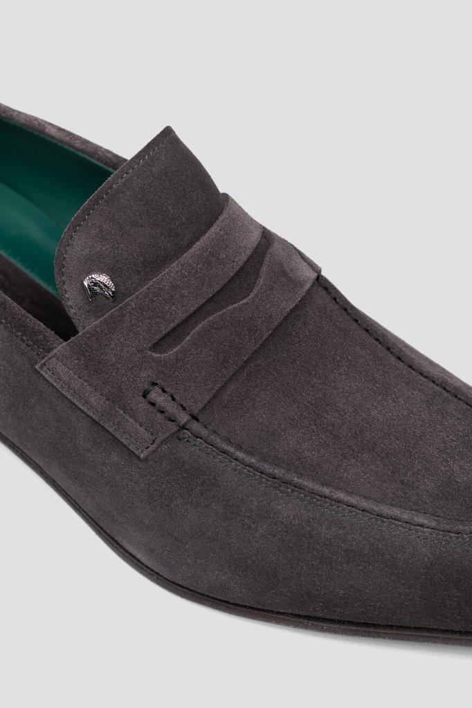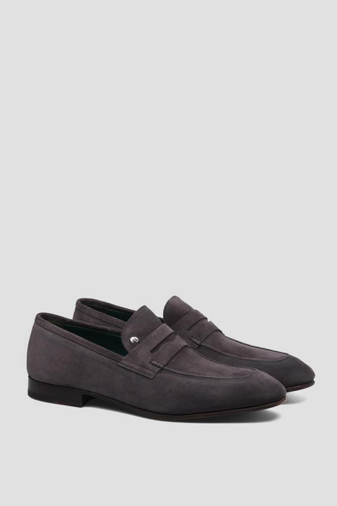 Лоферы Stefano Ricci с классическим поперечным ремешком с прорезью на союзке. Модель изготовлена из мягкой замши с бархатистой текстурой и декорирована характерным для такого типа обуви рельефным швом и деталью в виде знаковой головы орла из металла серебристого оттенка спереди. Особенностями удобной пары стали широкая колодка и наличие гибкой кожаной подошвы тёмно-коричневого цвета с устойчивым квадратным каблуком.