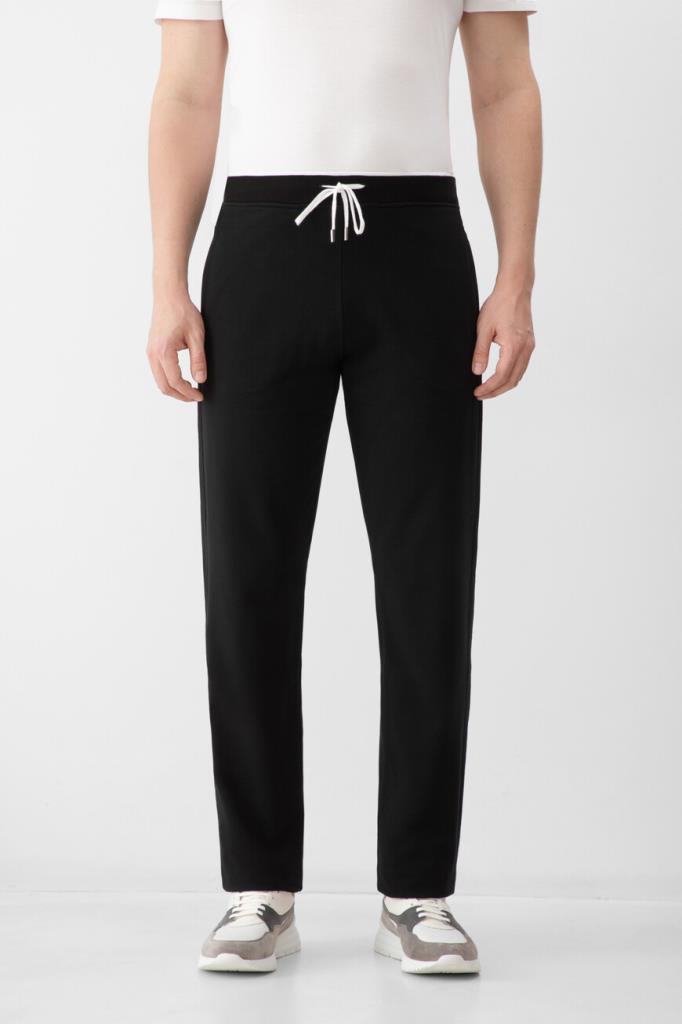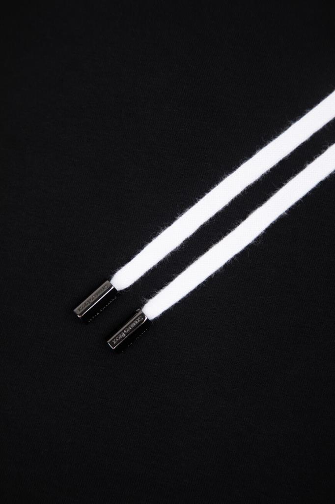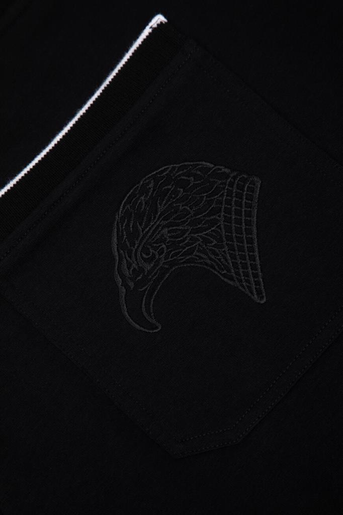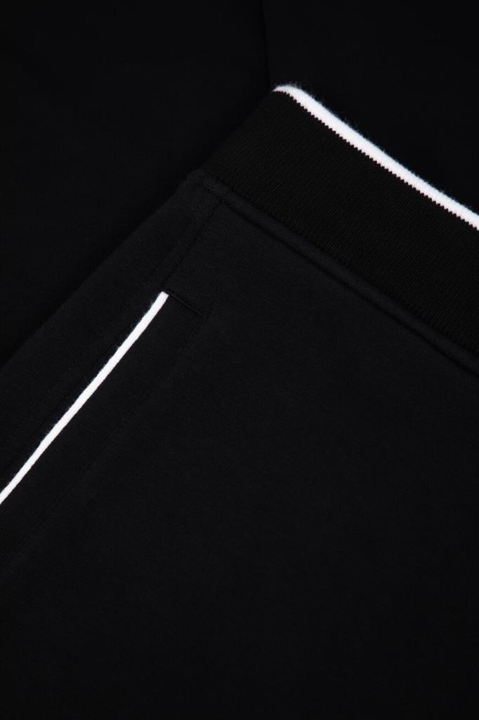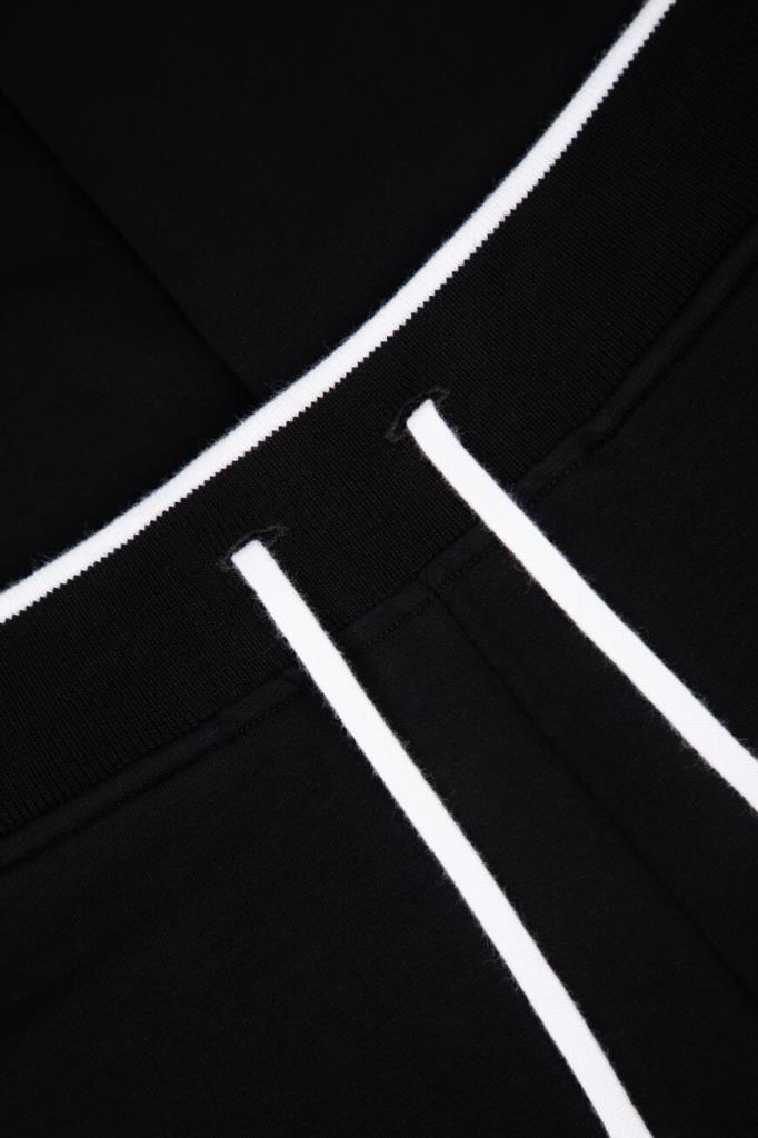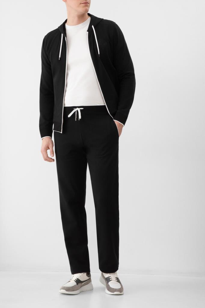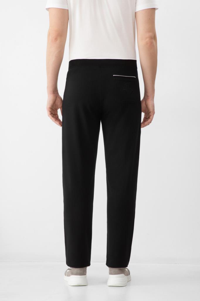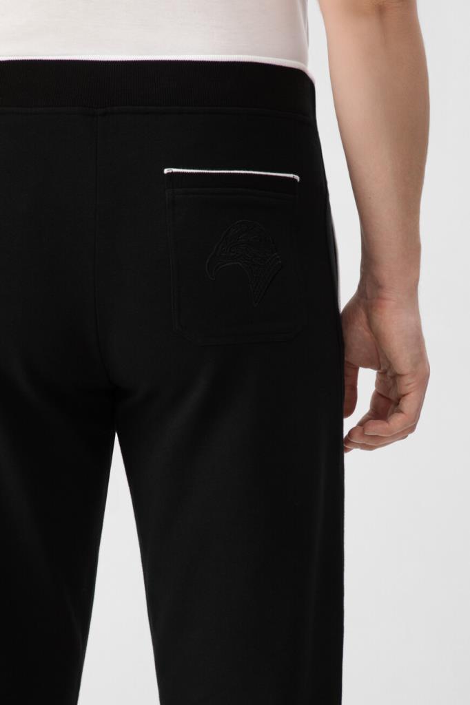 Чёрные спортивные брюки прямого силуэта от Stefano Ricci. Для производства изделия с широким эластичным поясом-кулиской используется эластичный хлопковый трикотаж. Карманы украшают контрастные полосы-кант, а сзади размещена крупная знаковая вышивка с головой орла, отсылающая к Дому.