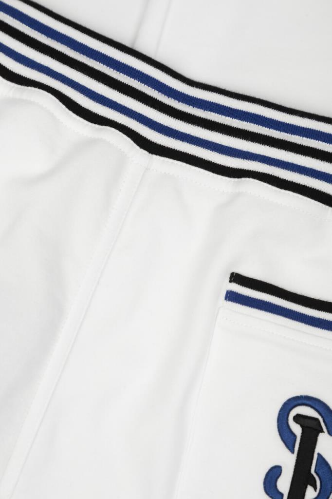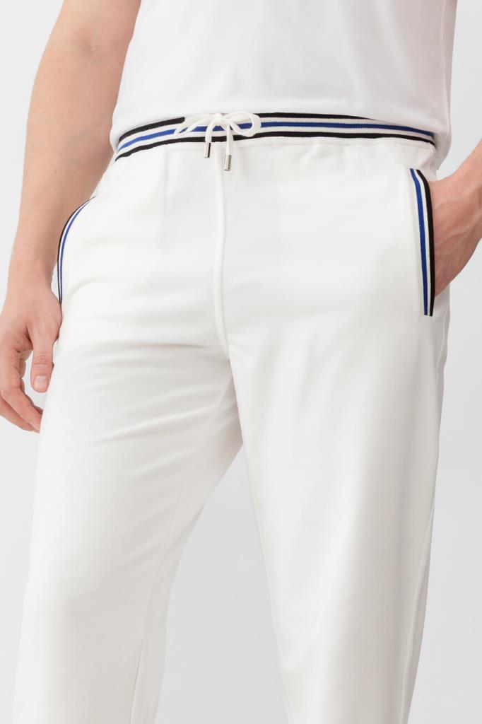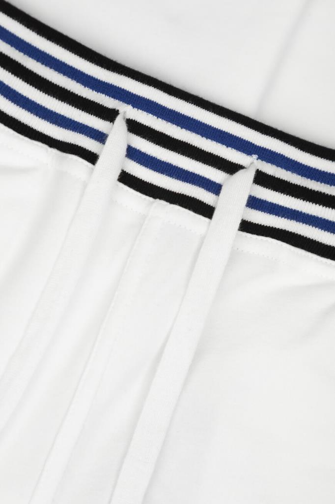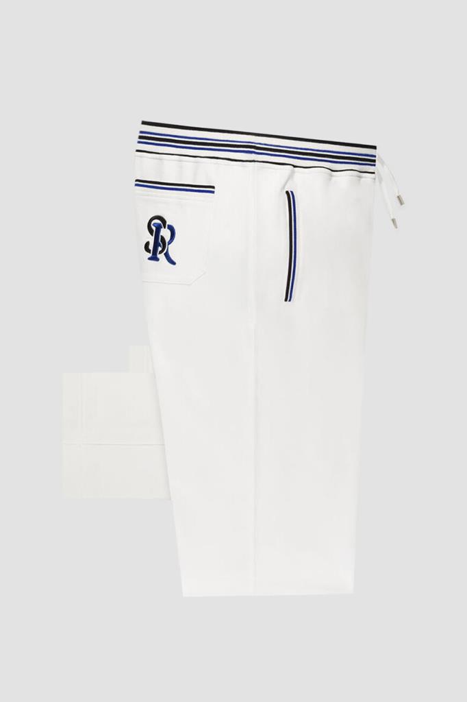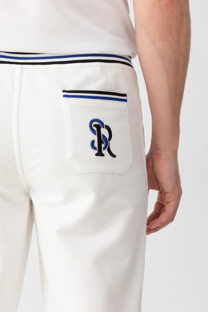 Брюки Stefano Ricci станут основой непринуждённого спортивного комплекта. Для создания изделия белого цвета выбран мягкий, немного эластичный трикотаж, сырьём для которого стал отборный длинноволокнистый хлопок. Широкий эластичный пояс, подобранный на кулиску, и три кармана подчёркнуты трёхцветным принтом в виде полос. В такой же палитре выполнена вышивка с лого-монограммой сзади.