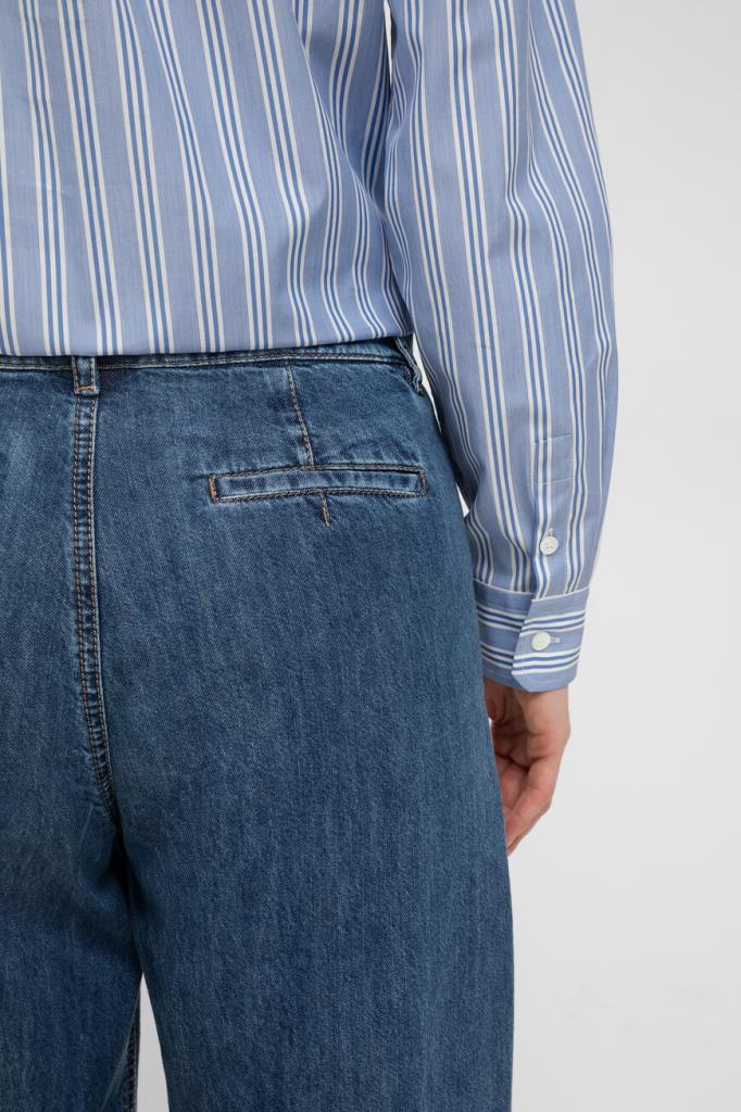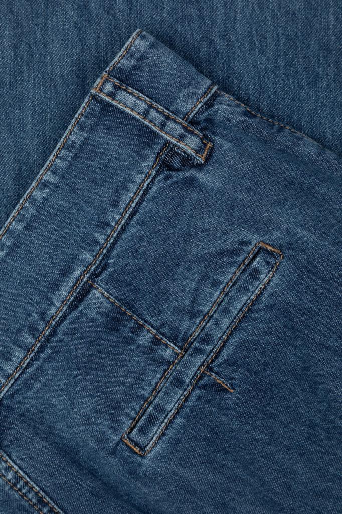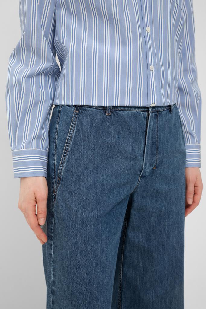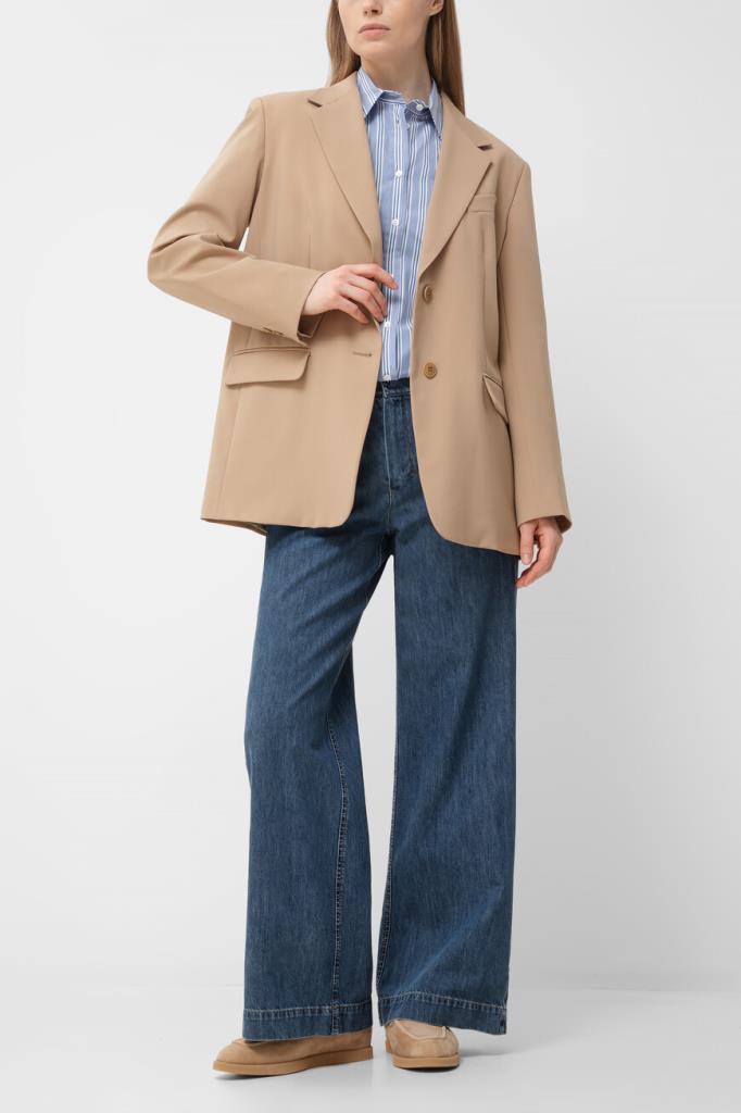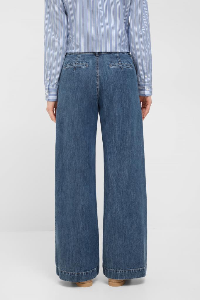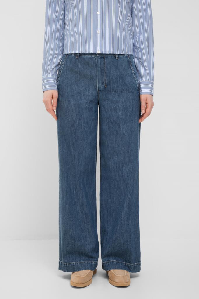 Джинсы синего цвета от Max Mara с широкими штанинами. Для пошива изделия дизайнеры бренда выбрали прочный хлопковый деним. Свободный крой обеспечивает комфорт во время передвижений, а косые карманы по бокам и двойные прорезные задние карманы – практичность. Модель станет незаменимой вещью в вашем гардеробе, идеально подходящей как для повседневных образов, так и для создания элегантных комплектов.