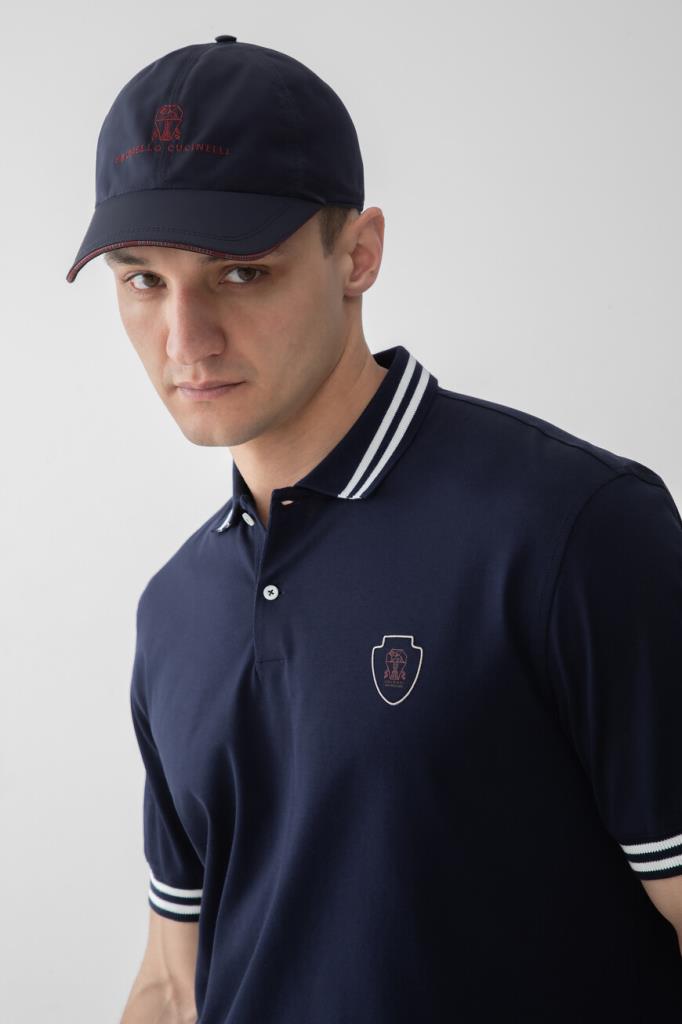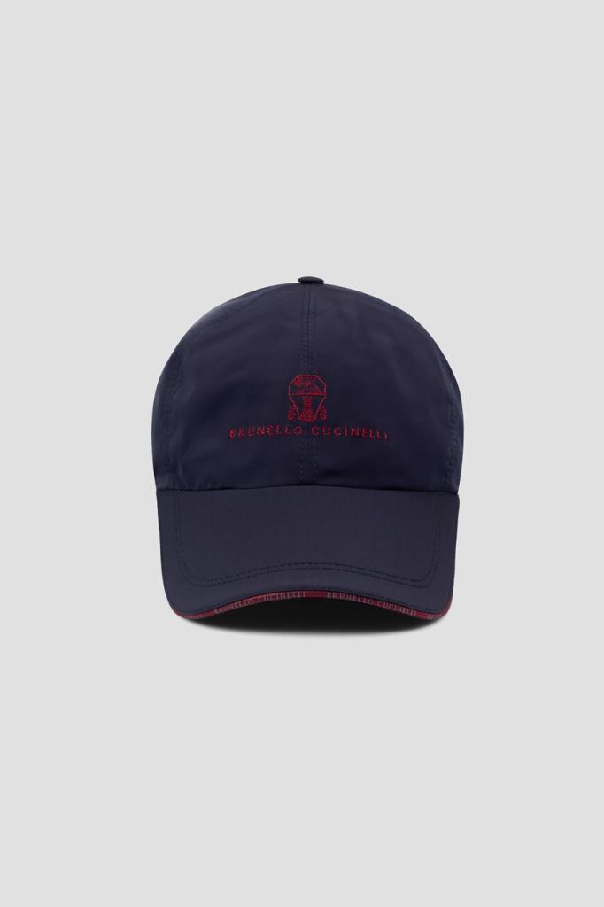 Бейсболка из прочной водоотталкивающей микрофибры от BRUNELLO CUCINELLI. Микрофибра — изысканная ткань японского происхождения — изготовлена с нитью из полиамида, обмотанной нитью из полиэстера. Специальный процесс обработки придаёт поверхности лёгкий переливчатый эффект и бархатистую текстуру, струящуюся и приятную на ощупь. Наконец, отделка помогает защитить ткань от минимального контакта с водой. Функциональная модель окрашена в тёмно-синий оттенок и декорирована вышитой знаковой символикой Дома - гербом Соломео и надписью-логотипом на тулье.