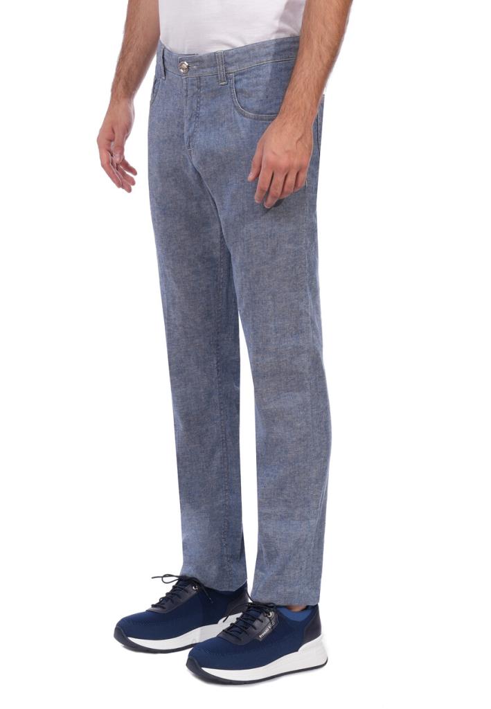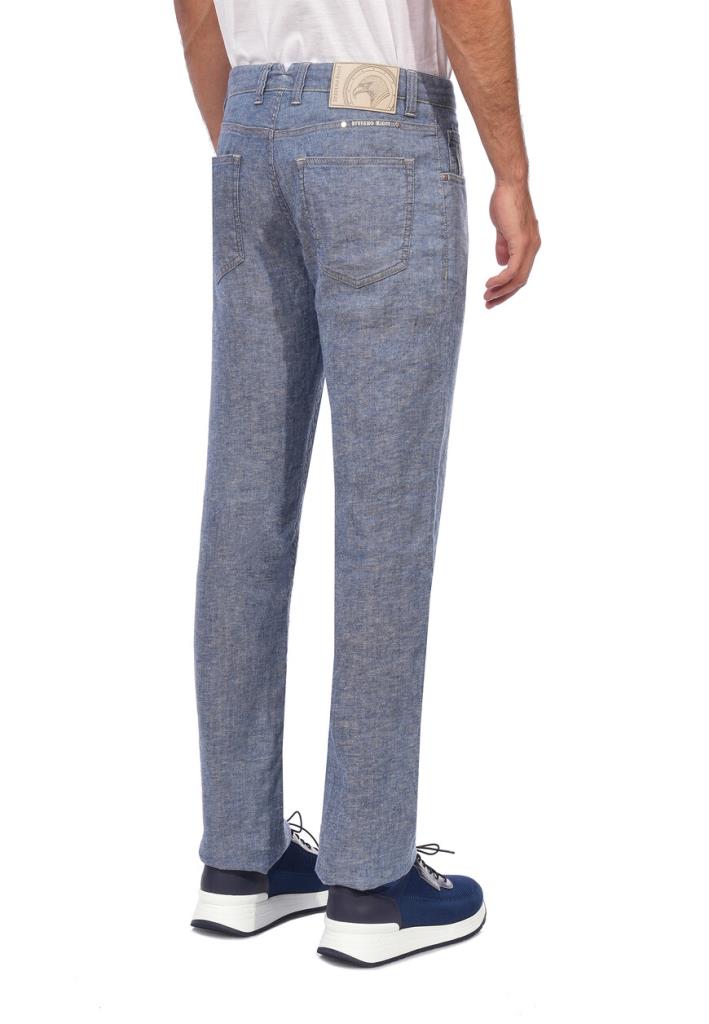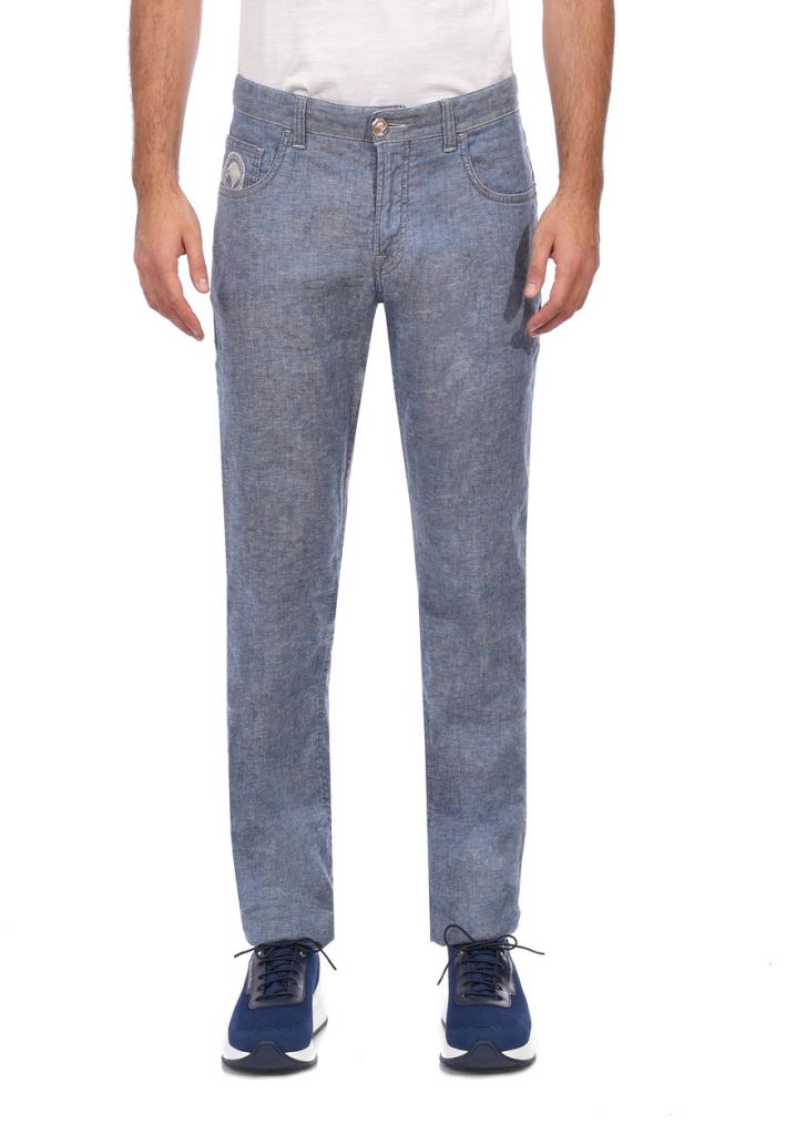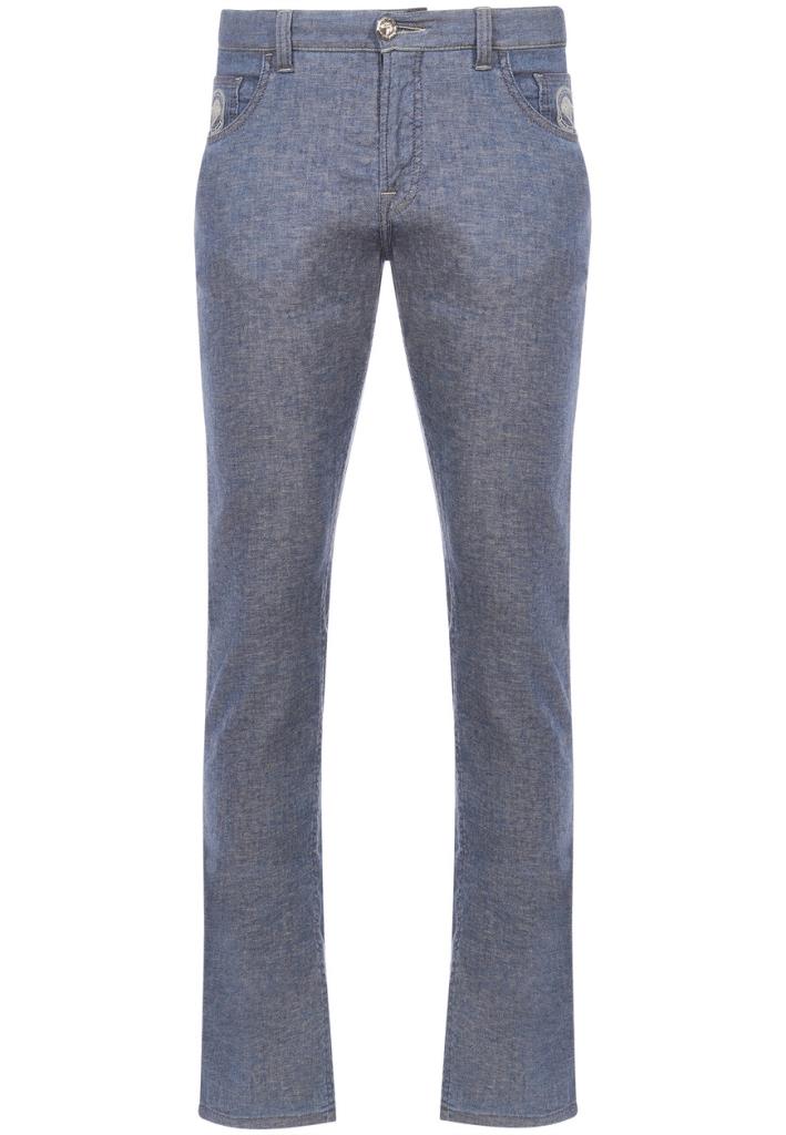 Джинсы Stefano Ricci выполнены из высококачественного денима насыщенного синего оттенка с легким эффектом потертости, который подчеркивает текстуру ткани. Основной материал – премиальный хлопок с добавлением эластана, обеспечивающий оптимальную посадку и комфорт в носке. Пояс оснащен пятью шлевками для ремня и застегивается на металлическую пуговицу с фирменным логотипом. Центральная застежка – молния с плавным ходом, дополненная внутренней защитной планкой. Передняя часть джинс включает два классических прорезных кармана с укрепленными заклепками и дополнительный карман для монет, украшенный тонкой вышивкой логотипа. Задняя часть изделия имеет два накладных кармана с аккуратной отделочной строчкой и вышитым фирменным орнаментом. Особым акцентом служит кожаная вставка на заднем поясе с тисненым логотипом и металлической отделкой, которая подчеркивает статус бренда. Крой джинс прямой с легким заужением к низу, что создает современный силуэт, подходящий для повседневной носки и более формальных сочетаний. Все швы выполнены с высокой точностью и прочностью, что гарантирует долговечность изделия. Эти джинсы идеально подходят для создания как повседневных, так и полуформальных образов. Сочетайте их с поло или кашемировыми свитерами для расслабленного стиля. Для более строгого образа добавьте однотонную рубашку и пиджак из мягких тканей. Завершить образ помогут кожаные лоферы или дерби, а также аксессуары, такие как ремень с минималистичной пряжкой.