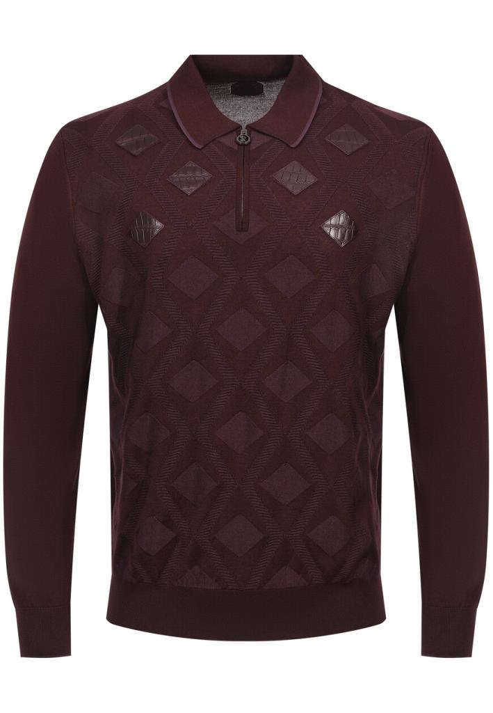 Поло Stefano Ricci выполнено из высококачественного трикотажного полотна, отличающегося мягкостью и эластичностью. Основная ткань украшена геометрическим узором в виде ромбов с акцентами из натуральной кожи, создающими роскошный и изысканный вид. Воротник выполнен из плотной трикотажной резинки, которая сохраняет форму и аккуратно прилегает к шее. Застёжка-молния на груди украшена фирменным металлическим бегунком с логотипом бренда. Рукава заканчиваются трикотажными манжетами, обеспечивающими комфортную посадку. Нижний край изделия обработан широкой эластичной резинкой, что позволяет поло идеально сидеть на талии. Это поло станет отличным выбором для особых случаев, благодаря сочетанию классического дизайна и уникальных декоративных элементов. Сочетайте его с темными классическими брюками и кожаными ботинками для создания элегантного вечернего образа, либо добавьте джинсы темного оттенка и лоферы для стильного повседневного лука. Это изделие подчеркнёт вашу индивидуальность и статус, гармонично дополняя любой гардероб.