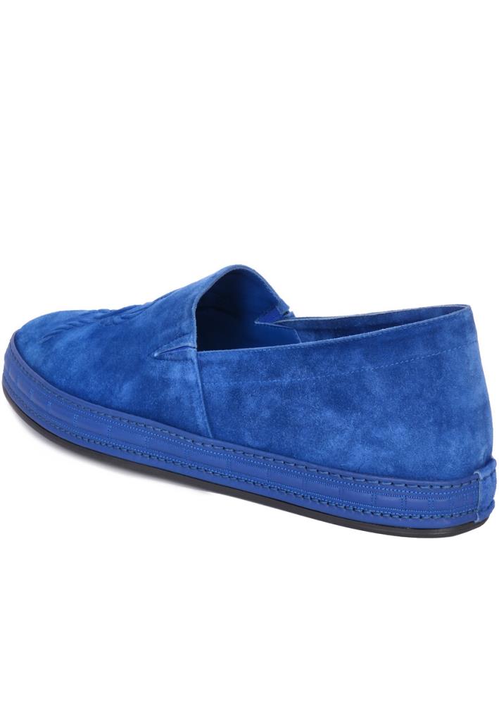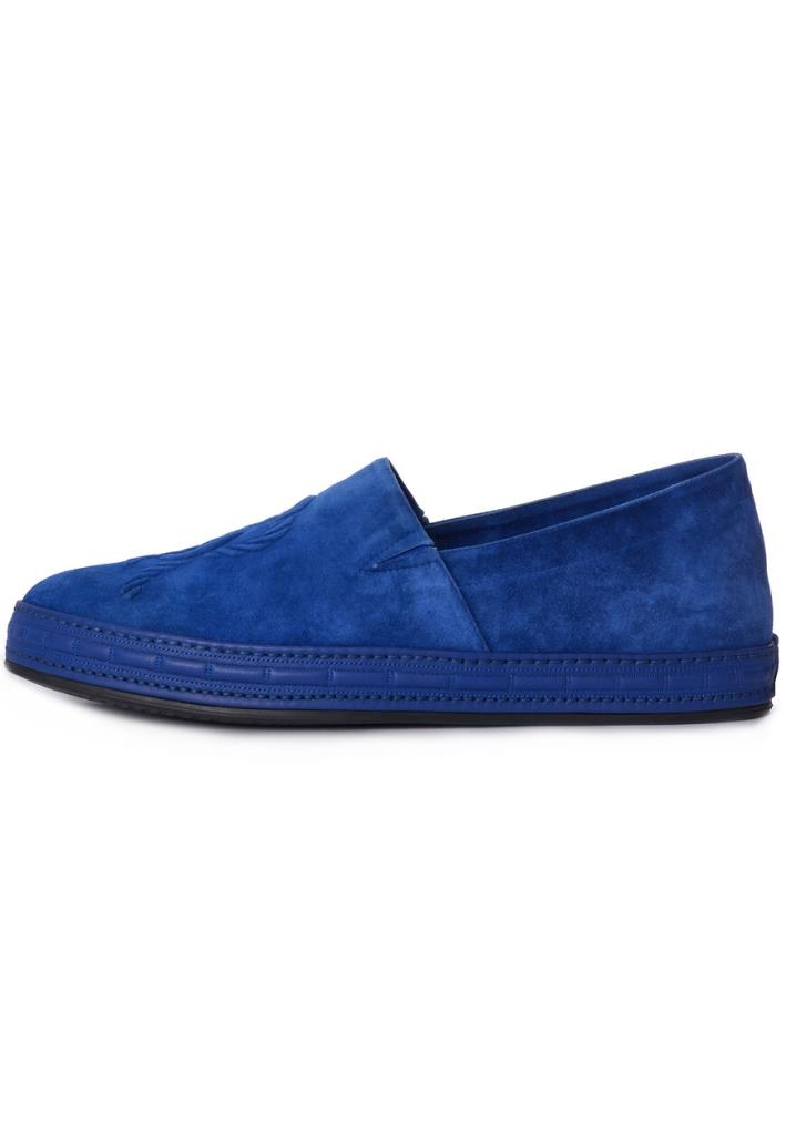 Слипоны синего цвета от Stefano Ricci – стильное сочетание утончённого дизайна и высокого качества исполнения. Верх выполнен из замши с мягкой бархатистой текстурой, обеспечивающей комфорт и изысканный внешний вид. Рельефная вышивка в виде знакового узора придаёт модели эксклюзивность и элегантность. Подошва изготовлена из лёгкой резины, декорированной рельефным рисунком, что подчёркивает премиальный стиль и гарантирует износостойкость. Боковые панели и задник выполнены с минималистичной строчкой, что обеспечивает изящную посадку. Внутренняя отделка из натуральной кожи обеспечивает высокий уровень комфорта и поддерживает оптимальный микроклимат для ног.