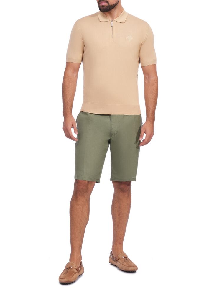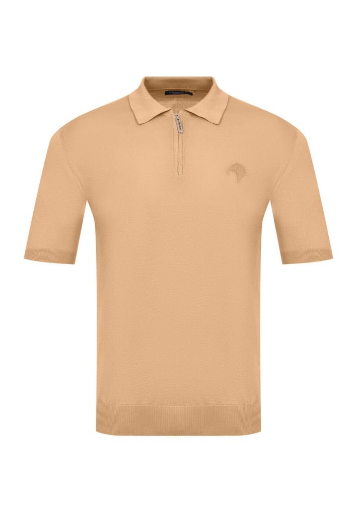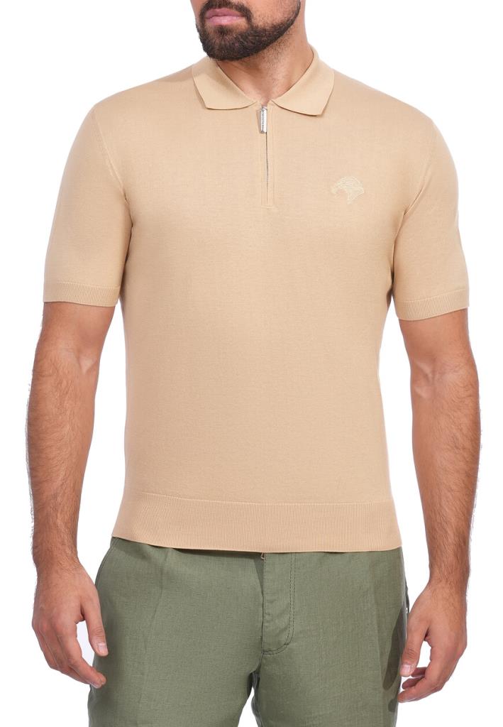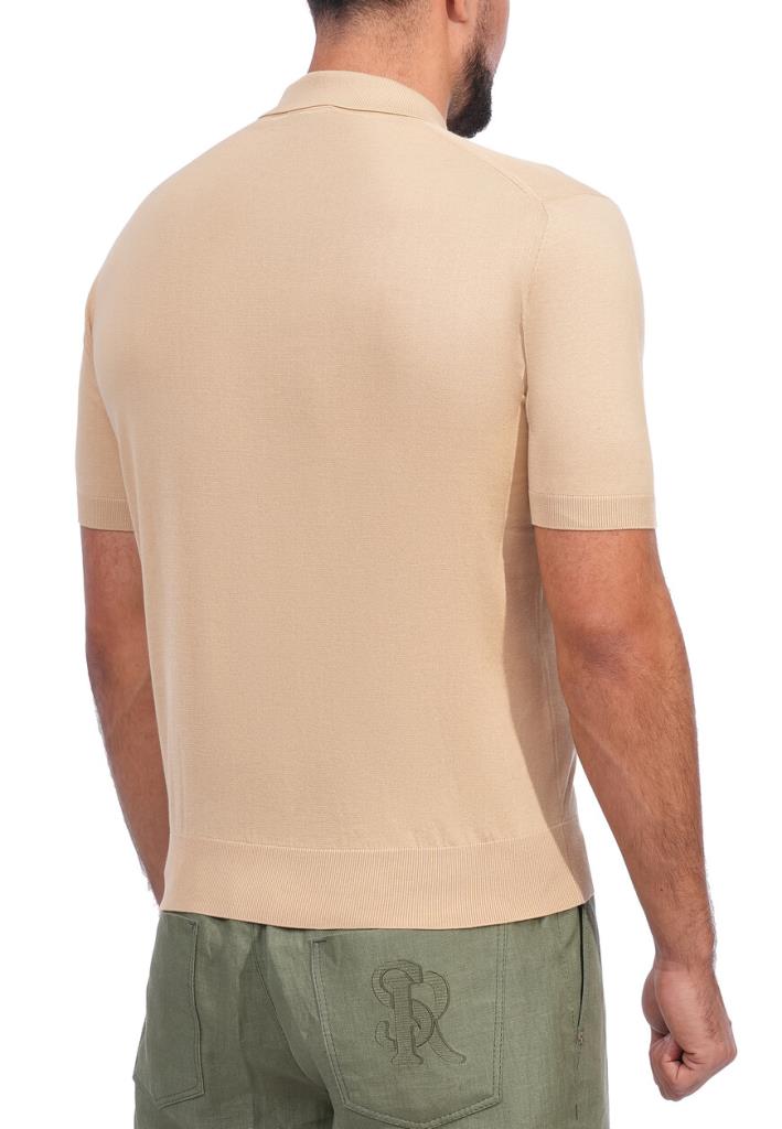 Поло Stefano Ricci излучает утонченное мастерство и сдержанную элегантность. Изготовленное из высококачественного материала, оно имеет мягкий песочный оттенок, который придает ему теплую и притягательную эстетику. Поло обладает классическим воротником, который уравновешивается современной деталью в виде стильной молнии, добавляя изысканный и функциональный элемент в дизайн. Тонкий логотип бренда Stefano Ricci, элегантно вышитый на груди, демонстрирует превосходство и роскошь в каждом стежке. Ребристые манжеты и подол деликатно завершают образ, обеспечивая идеальную посадку и комфорт, в то время как нежная текстура ткани обещает ощущение роскоши на коже.