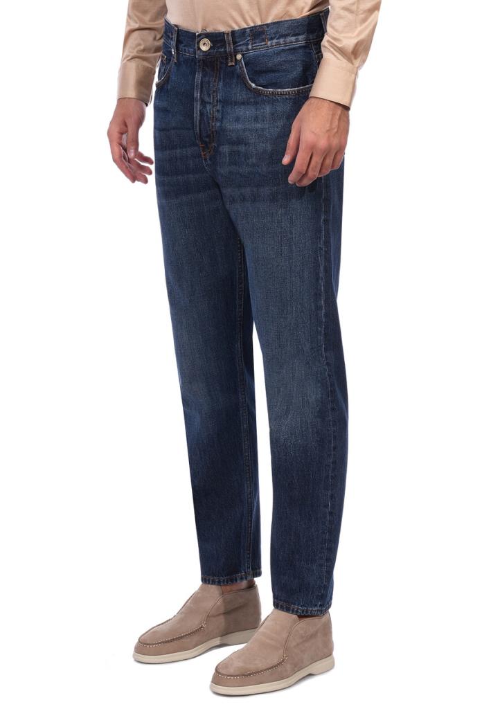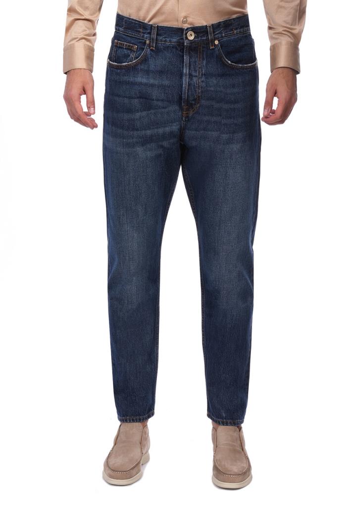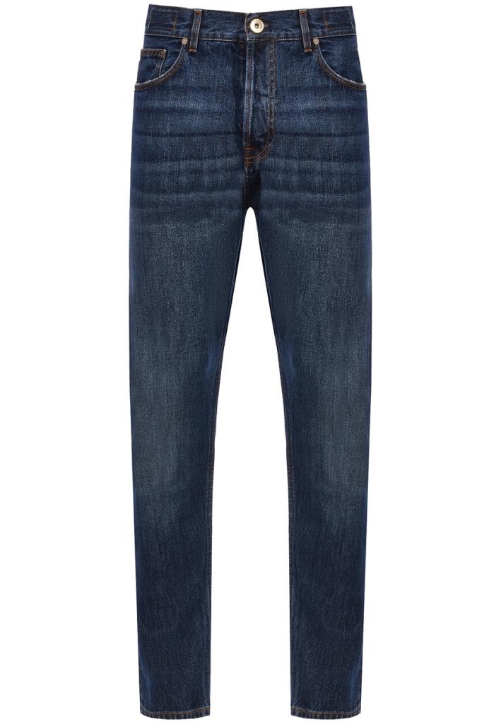 Джинсы Eleventy выполнены из плотного высококачественного денима с глубоким синим оттенком и искусственным эффектом потертостей, что добавляет модели характерный шарм и стиль. Талия оформлена стандартным поясом с петлями для ремня, который фиксируется классической металлической пуговицей с гравировкой бренда. Застежка выполнена на молнии с надежным металлическим бегунком. Передние карманы имеют скошенный вход и декорированы двойной отстрочкой для дополнительной прочности и долговечности. Маленький карман, расположенный внутри правого кармана, добавляет функциональности и подчеркивает классический стиль джинсов. Задние карманы выполнены с лаконичной отстрочкой и расположены симметрично, что обеспечивает эстетическую сбалансированность дизайна. Все швы обработаны прочными нитями контрастного оттенка, что создает визуальный акцент и добавляет стильные детали. Низ брючин оформлен аккуратным подворотом, что предотвращает износ материала и подчеркивает внимание к деталям. Материал джинс мягкий, но одновременно сохраняет форму, благодаря добавлению эластана, что делает их удобными в носке. Эти джинсы идеально подходят для создания образов в стиле smart casual. Они прекрасно сочетаются с белой рубашкой и кожаными лоферами для утонченного стиля или с трикотажным пуловером и кедами для расслабленного повседневного образа. Выбирайте минималистичные аксессуары, такие как кожаный ремень и часы, чтобы подчеркнуть элегантность и завершенность вашего наряда.