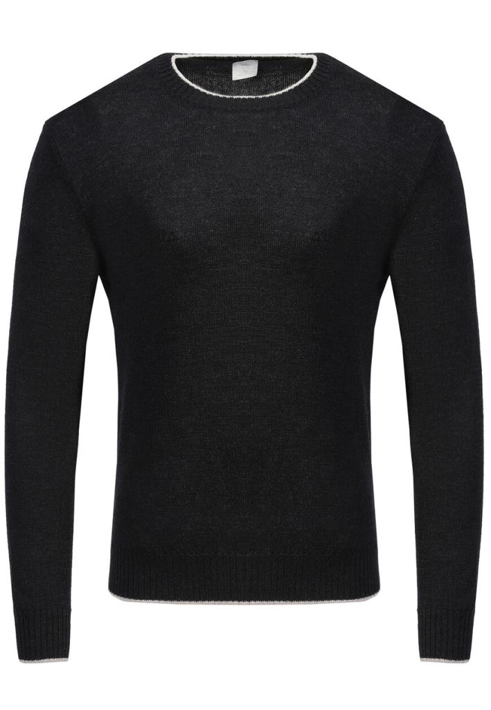 Пуловер Eleventy выполнен из качественной шерсти средней плотности, что обеспечивает тепло и комфорт в прохладное время года. Круглый вырез горловины обработан эластичной трикотажной резинкой, что добавляет удобства при носке и обеспечивает идеальную посадку. Декоративный контрастный кант вдоль горловины придаёт пуловеру изысканность и выделяет его среди других базовых вещей. Втачные рукава классического кроя обеспечивают свободу движений и универсальную посадку. Глубокий чёрный цвет делает этот пуловер универсальным элементом гардероба, подходящим как для повседневных, так и для полуформальных образов. Этот пуловер станет отличной основой для многослойного образа. Сочетайте его с серыми или тёмно-синими брюками, чтобы создать элегантный и строгий образ, или наденьте с джинсами для расслабленного кэжуал-стиля. Добавьте пальто классического кроя и кожаные ботинки для завершения изысканного образа. Простота и универсальность этого пуловера позволяют использовать его как базу для множества модных комбинаций.