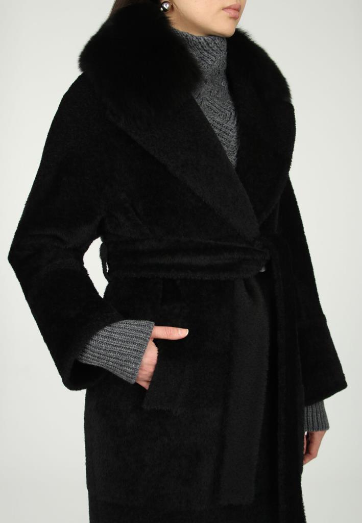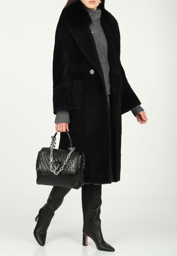 Изысканное черное пальто Mandelli из уникального сочетания шерсти альпаки породы сури. Насыщенный черный цвет придаёт образу строгость и универсальность, позволяя легко сочетать его с любой одеждой и аксессуарами. Модель отличается мягкой фактурой, обеспечивающей превосходную теплоизоляцию, и актуальным дизайном с объемным отложным воротником, который придаёт изделию утончённость вид. Прямой крой и длинный пояс подчеркивают талию. Внутренние швы пальто выполнены с безупречным вниманием к деталям, что подчеркивает высокий уровень качества итальянского бренда Mandelli. Пальто имеет функциональные прорезные карманы, которые незаметно расположены на передней части. Для создания утонченного и завершенного образа сочетайте изделие с высокими сапогами на каблуке и сумкой из мягкой кожи. Дополните ансамбль текстурным серым свитером и темными брюками, чтобы подчеркнуть контраст.