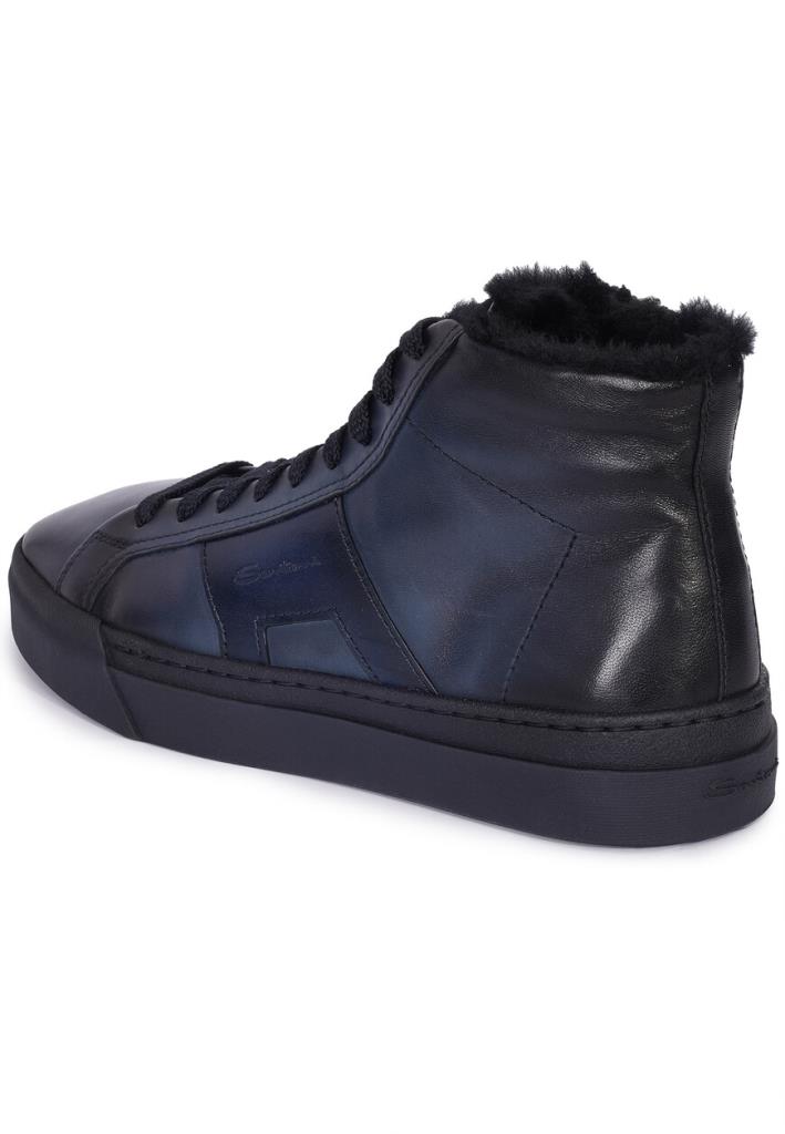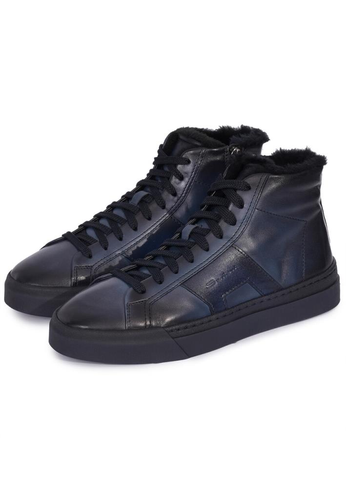 Стильные кроссовки Santoni воплощают современную элегантность и практичность в одном изделии. Выполненные из мягкой телячьей кожи глубокого синего цвета, они идеально подходят для создания как повседневных, так и более изысканных образов. Высота обуви обеспечивает дополнительный комфорт в прохладное время года, а подкладка из натурального меха создаёт уют и тепло, сохраняя при этом лёгкость. Черные шнурки и контрастная подошва добавляют модели спортивный акцент, подчёркивая динамичность и универсальность дизайна. Лаконичный логотип бренда на боковой части кроссовок указывает на их исключительное качество и итальянское происхождение. Эти кроссовки станут идеальным выбором для мужчин, которые ценят комфорт, стиль и функциональность в любой ситуации. Купить их можно по привлекательной цене с удобной доставкой по всей России.