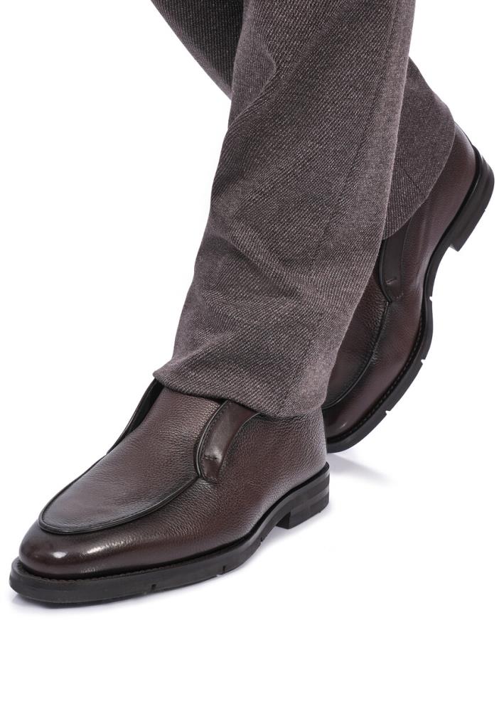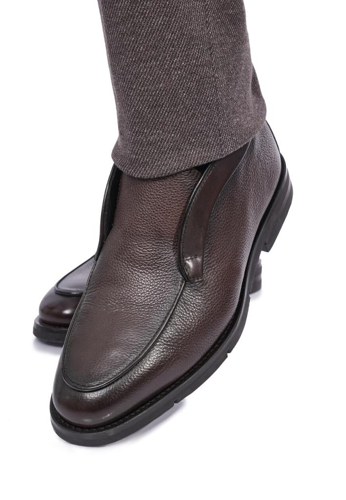 Изысканные мужские туфли от Santoni — апогей мастерства и элегантности. Эта пара является вершиной роскоши с ее насыщенным коричневым цветом и текстурой, которая напоминает натуральную кожу высочайшего качества. Линии обуви плавные и чистые, что придает модели безупречный и современный вид. Передняя часть плавно переходит в острый круглый носок, украшенный аккуратным швом, который добавляет туфлям характера и делает их выразительными. Комфортный черный резиновый подошва гарантирует устойчивость и долговечность, при этом сохраняя элегантность конструкции.