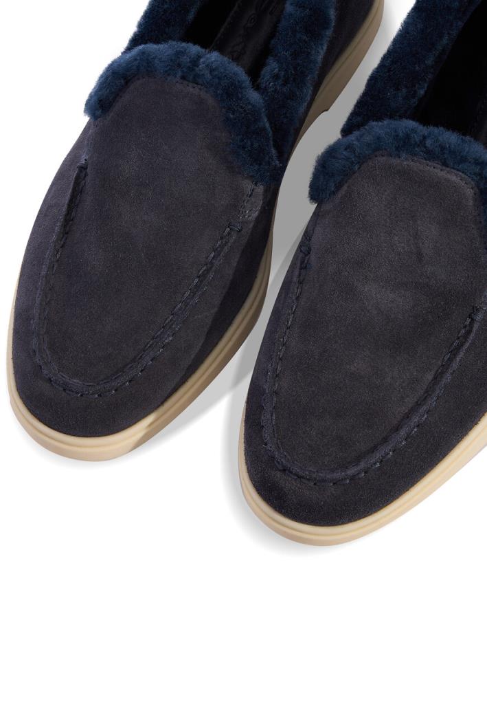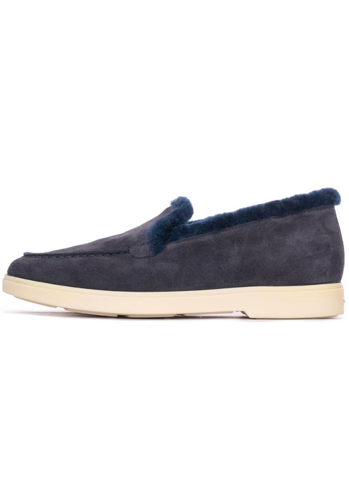 Лоферы Santoni – воплощение элегантности и роскоши. Глубокий синий цвет, олицетворяющий благородство и утонченность, оттеняет премиальную замшевую кожу. Она мягкая, но при этом плотная и прочная, идеально обработанная, что делает лоферы не только стильными, но и очень комфортными. Окантовка из темно-синего меха придает им изысканность и теплоту, а тонкая строчка по краю подчеркивает аккуратность и совершенство кроя. Подошва из бежевой резины обеспечивает отличное сцепление с поверхностью, а ее легкий рельеф придает лоферам еще большую изящность. Эти лоферы Santoni – идеальный выбор для тех, кто ценит качество, стиль и удобство. Купить их можно по привлекательной цене с удобной доставкой по всей России.