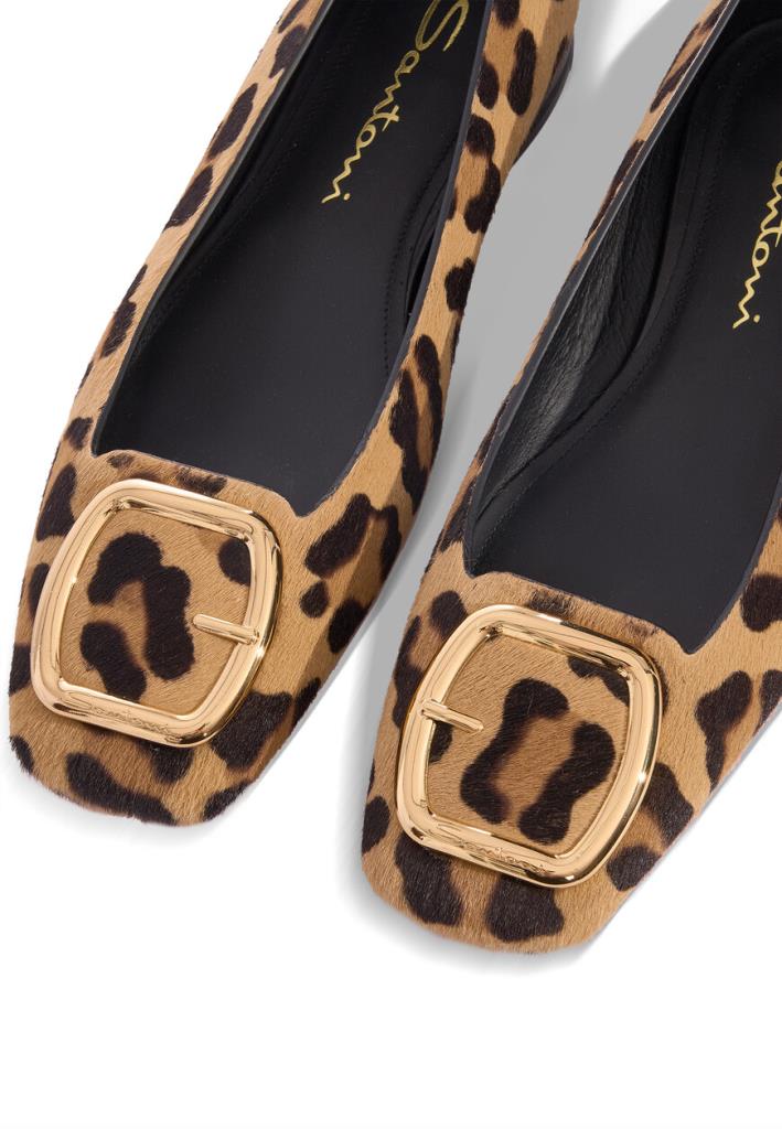 Балетки Santoni - идеальный выбор для тех, кто ценит стиль и качество. Их изысканная форма подчеркнута нежным и стильным леопардовым принтом, выполненным из премиальной кожи. Каждая деталь продумана до мелочей: блестящая золотая пряжка, которая придаёт балеткам изысканности, и подкладка из натуральной кожи, обеспечивающая комфорт при носке. Купить их можно по привлекательной цене с удобной доставкой по всей России.