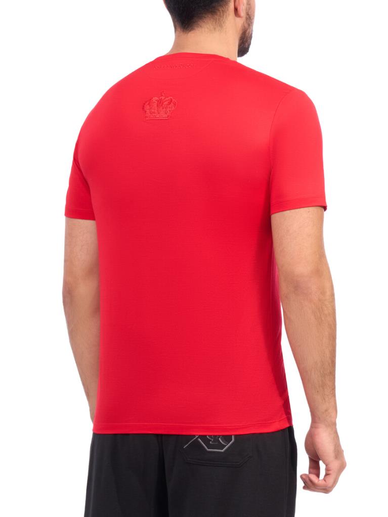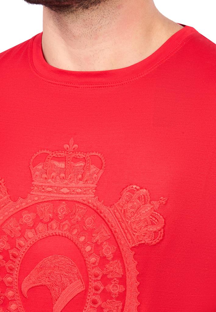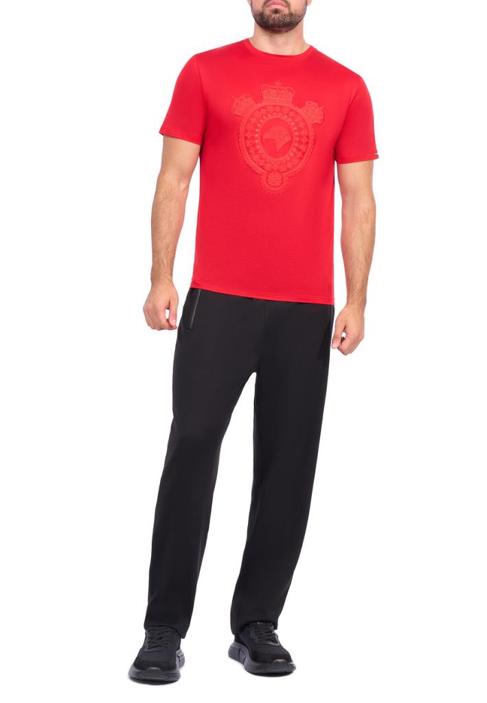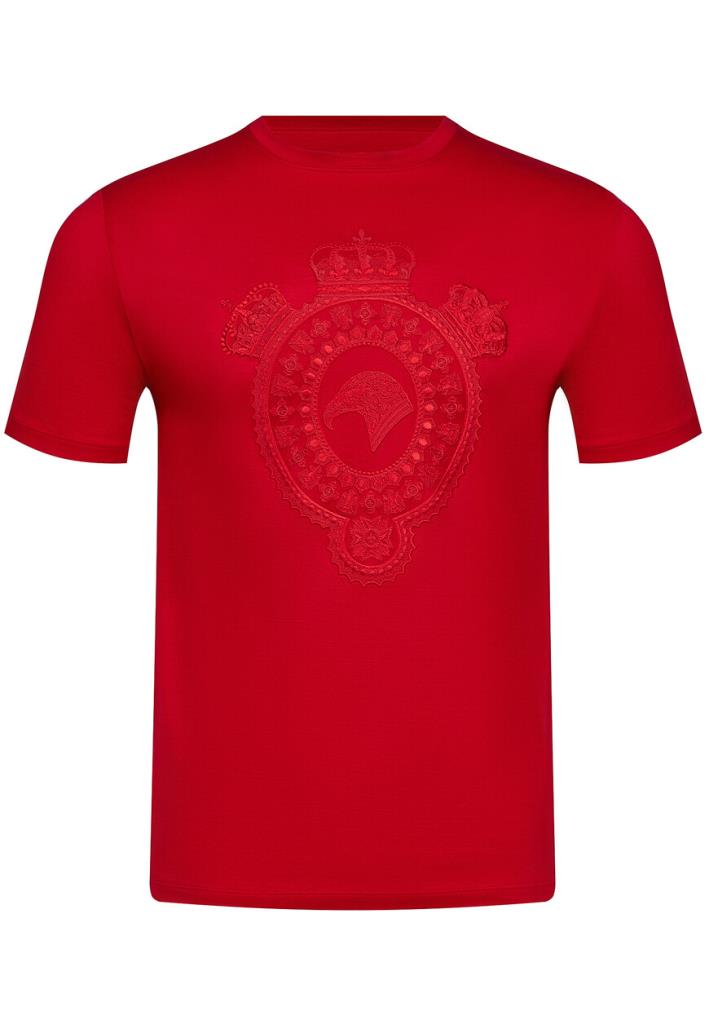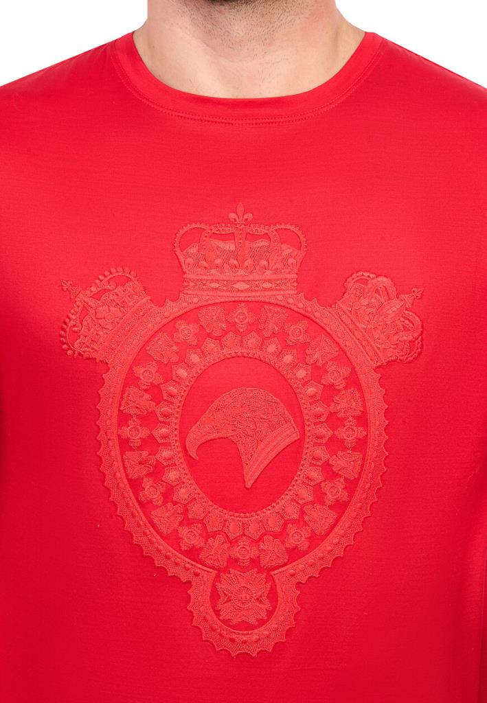 Футболка Stefano Ricci является воплощением элегантности и безупречного вкуса на фоне смелого красного цвета, который без труда привлечет внимание и подчеркнет динамичный характер её владельца. Особенностью дизайна является внушительный геральдический герб, богато вышитый на груди в тон основного материала, создавая тонкий, но заметный рельеф на поверхности. Элаборативные детали и изящные узоры говорят о роскоши и внимании к деталям, присущих бренду Stefano Ricci. Футболка выполнена из высококачественного хлопкового материала, который обеспечивает высокий уровень комфорта и долговечность.