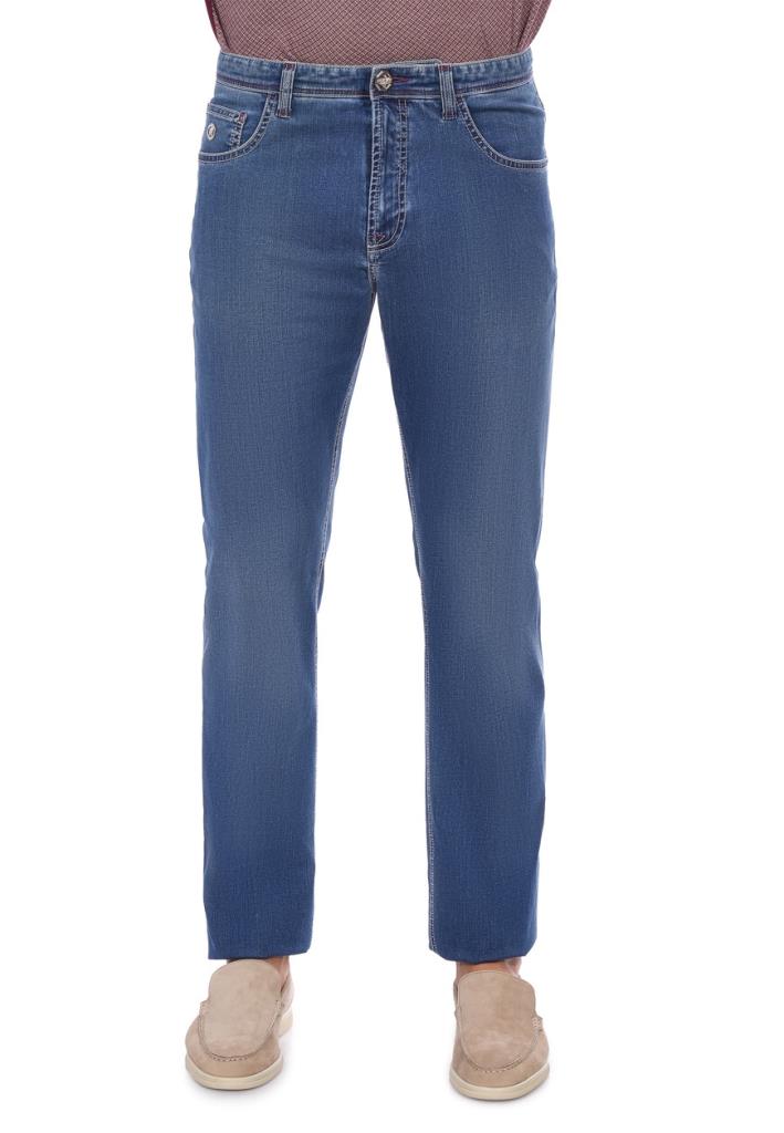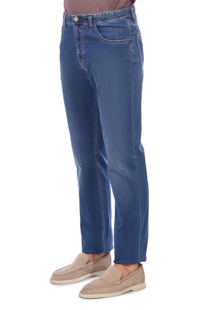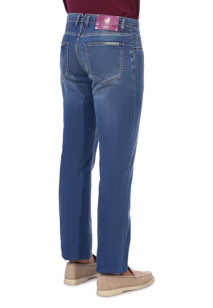 Светло-синие джинсы Stefano Ricci воплощают гармонию между классическим денимом и современным стилем. Изготовленные из премиального хлопка с добавлением эластичных волокон, они обеспечивают максимальный комфорт и идеальную посадку на протяжении всего дня. Джинсы выполнены прямого кроя создает свободный, но элегантный силуэт. Детали изделия продуманы до мелочей: пояс с петлями для ремня украшен кожаной нашивкой контрастного винного цвета с фирменным тиснением логотипа бренда. На задней части располагаются накладные карманы, дополненные классической двойной отстрочкой и небольшим логотипом на одном из них, что добавляет брюкам нотку изысканности. Светлая выбеленность на бедрах и коленях создает легкий эффект потертости, придавая изделию расслабленный и непринужденный вид. Эти джинсы идеально подходят для создания повседневных образов с элементами повседневной элегантности. Носите их с поло насыщенных оттенков, как на фото, или с белой рубашкой для создания более освежающего вида. Дополните образ замшевыми лоферами, светлыми мокасинами или кожаными кедами для непринужденного стиля, который будет выглядеть одновременно современно и утонченно.