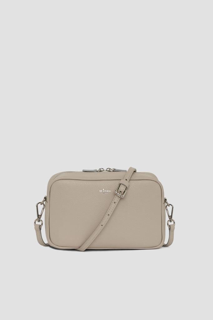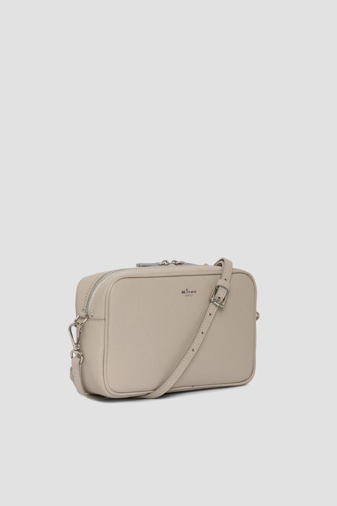 Сумка Kiton на тонком регулируемом ремне с серебристыми карабинами. Для производства аксессуара выбрана прочная телячья кожа с крупнозернистой фактурой. Внутри - одно просторное отделение на молнии с двумя бегунками и открытый накладной карман. Атрибутом Дома является фольгированная надпись-логотип «Kiton Napoli», расположенная на лицевой стенке.