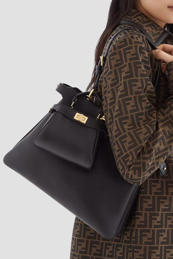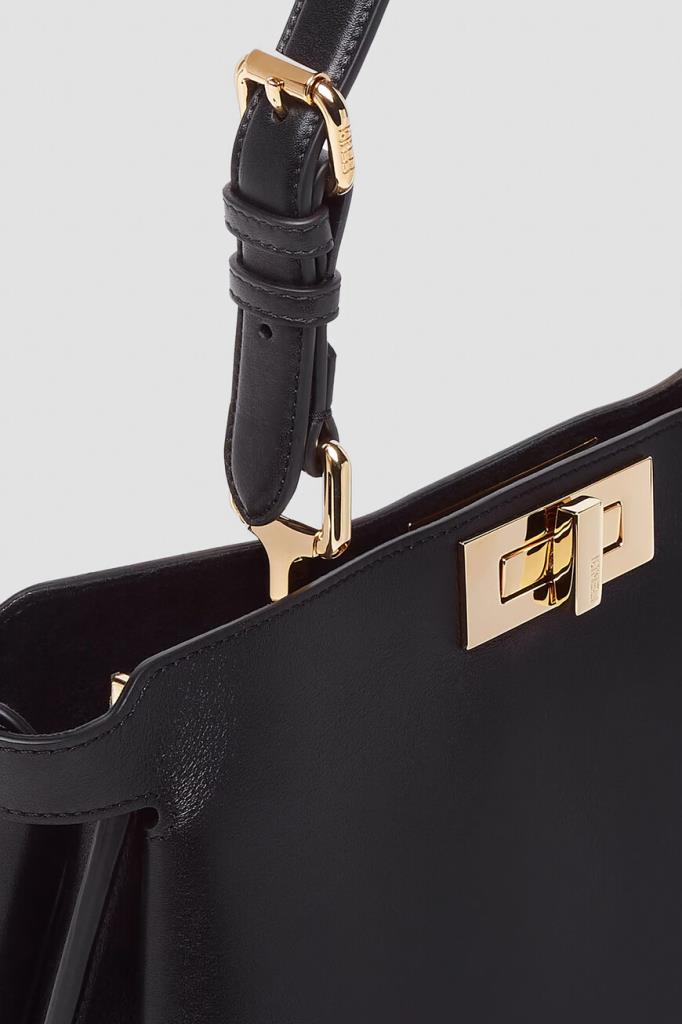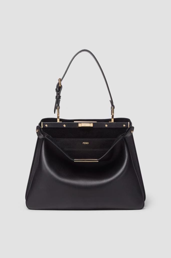 Чёрная сумка Peekaboo Soft привлекает внимание «улыбкой» спереди. Для создания модели с шелковистой на ощупь гладкой текстурой выбрана кожа телёнка. Конструкция легендарного аксессуара характеризуется наличием двух просторных внутренних отделений на знаменитой поворотной застёжке светло-золотого оттенка с выгравированным логотипом Дома. Отличительными особенностями изделия являются боковины с ремешками на клёпке и малый вес благодаря планке из алюминия, обтянутой кожей.