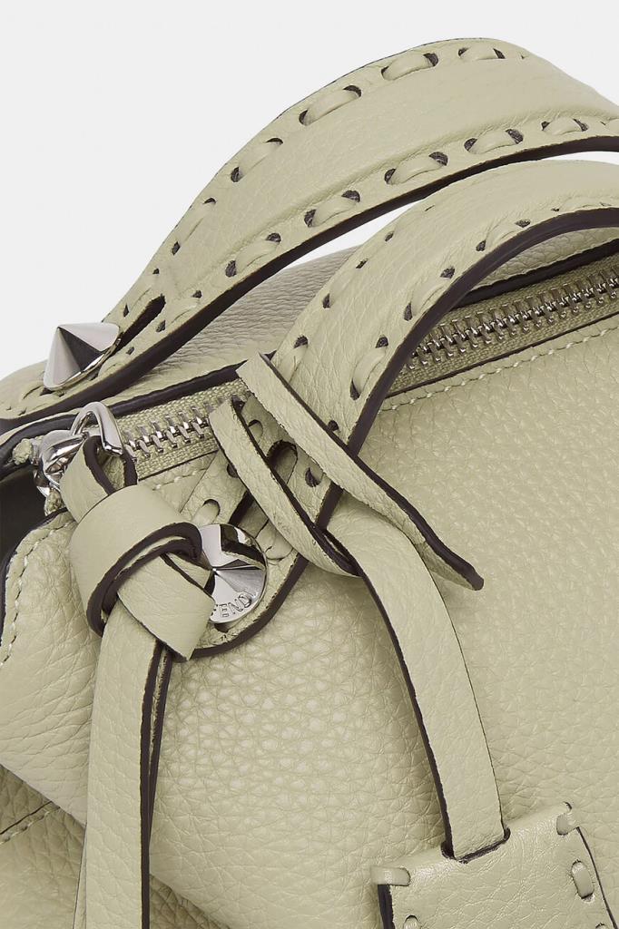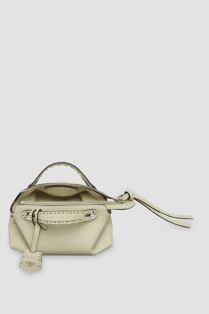 Cумка By The Way Selleria Mini от бренда Fendi с палладиевой фурнитурой. Для производства легендарной модели, переосмысленной в мягком и лёгком дизайне, выбрана зернистая телячья кожа Cuoio Romano. В роли знакового для Дома декора выступают прошивка 156 макро-стежками в тон - символ отделки Selleria, созданной мастерами Fendi в 1925 году, а также наличие персонализируемой брендированной подвески в тон изделию и округлая нашивка с тиснёной символикой во внутренней части.