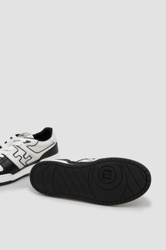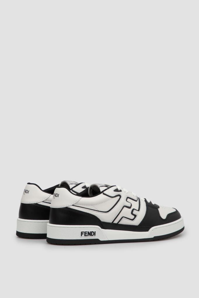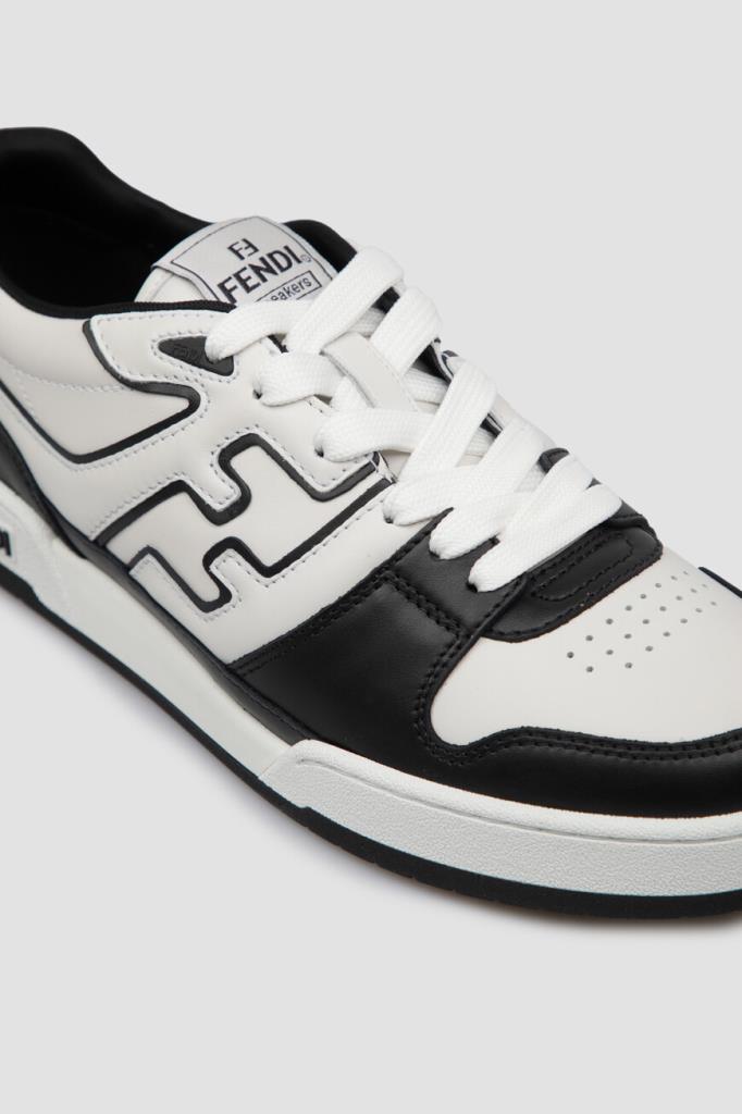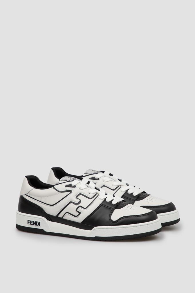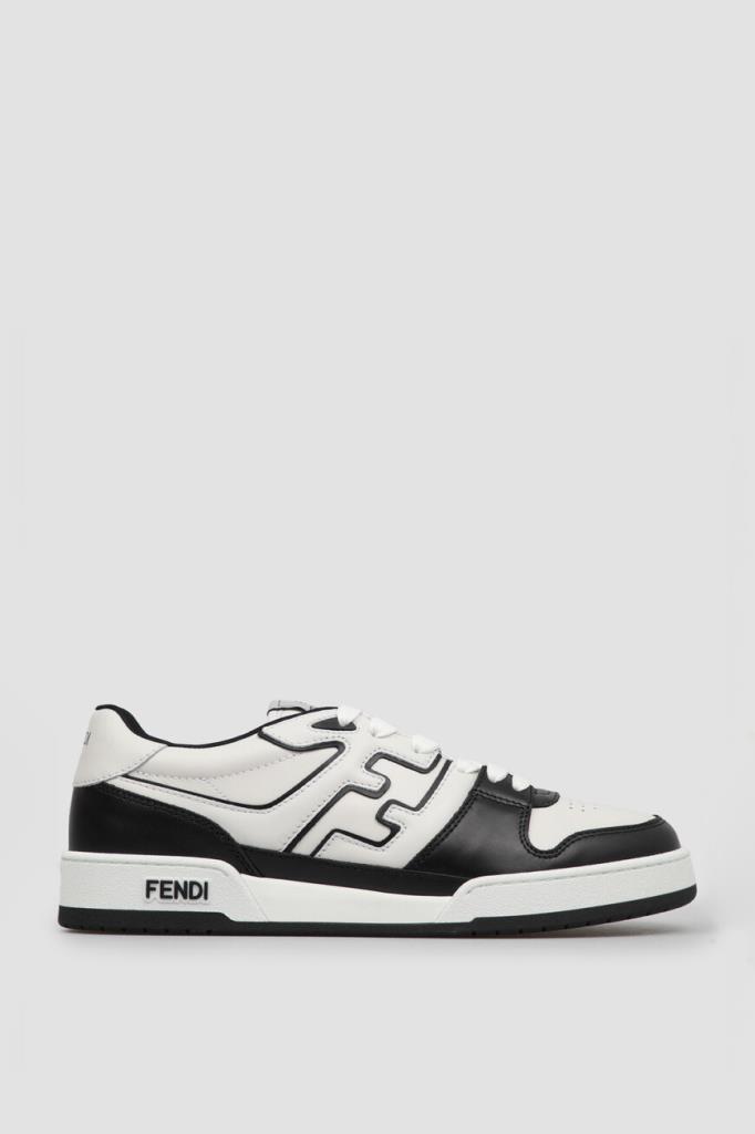 Чёрно-белые сникеры Fendi Match на плоской подошве. Для создания удобной пары с закрытым типом шнуровки выбрана гладкая телячья кожа. Принадлежность изделия Дому обозначена крупной рельефной аббревиатурой «FF», подчёркнутой узким кантом, на боковинах, вставкой с контрастной символикой на язычке, надписью «Fendi Roma» в задней части и логотипом сбоку на подошве.