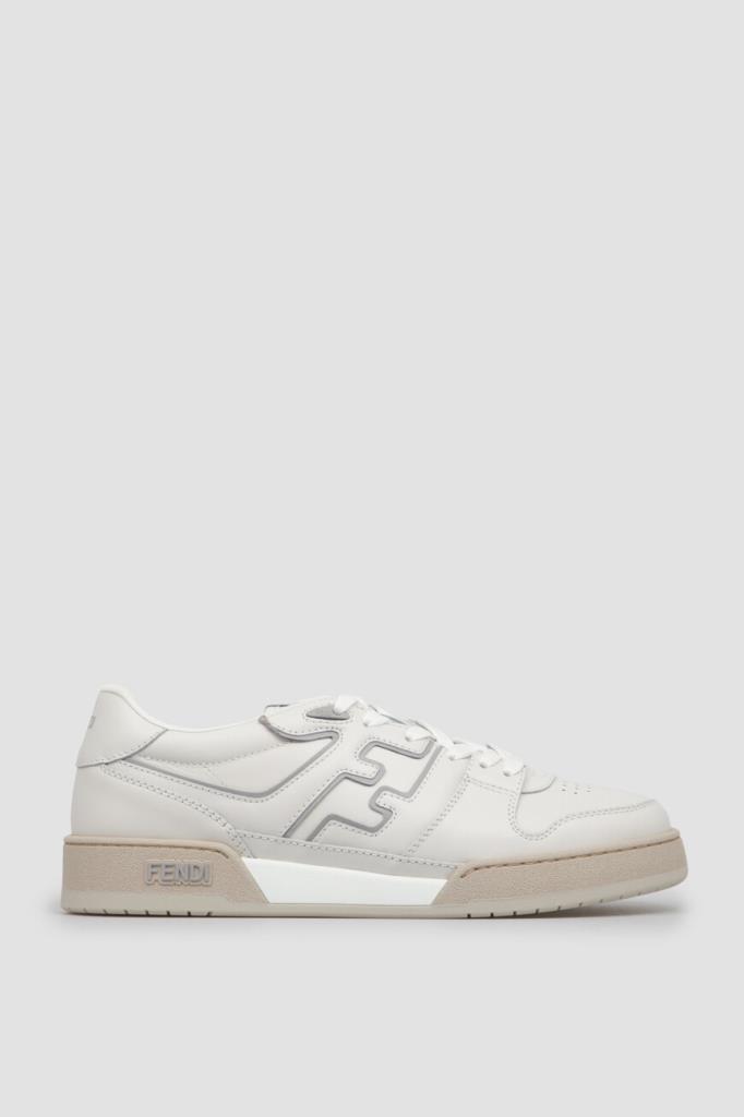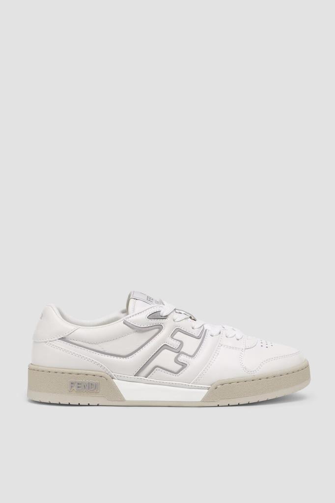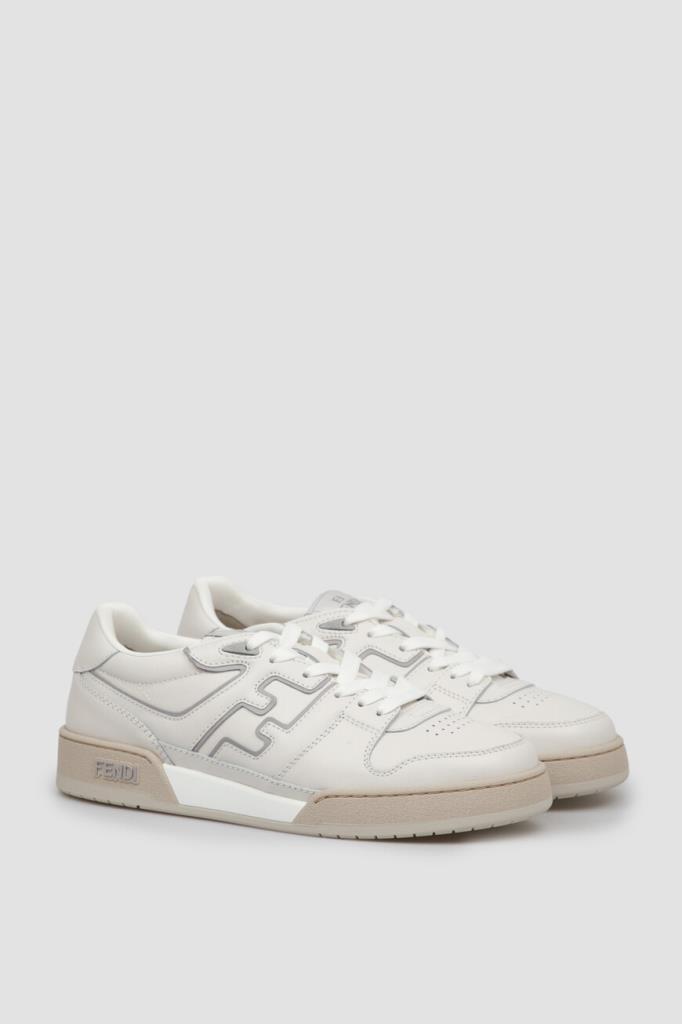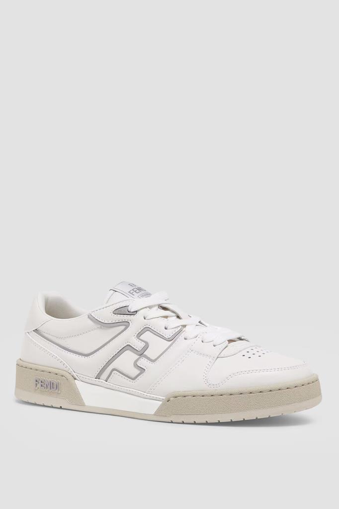 Белые сникеры Fendi Match с перфорацией на союзке. Для производства изделия с крупной рельефной аббревиатурой «FF», подчёркнутой узким кантом, на боковинах используется гладкая телячья кожа. Особенностями удобной пары с широкой колодкой являются закрытая перекрёстная шнуровка и плоская подошва из каучука с рифлением снизу и надписью-логотипом сбоку в задней части.