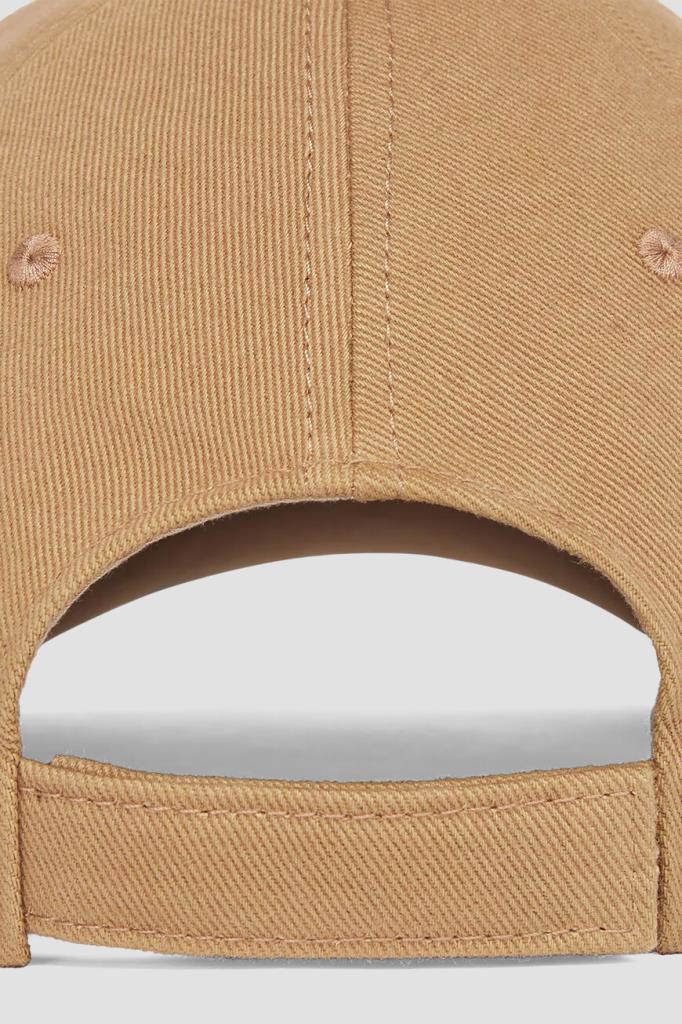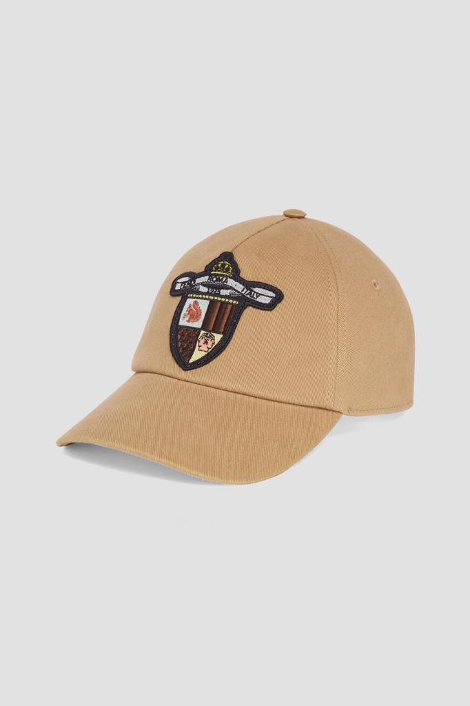 Бейсболка Fendi с регулирующим ремешком-велкро. Изделие выполнено из плотной холщовой ткани на основе хлопка светло-коричневого цвета с добавлением стрейчевых волокон. Отличительной деталью является крупная нашивка-аппликация Fendi Crest - эмблема клуба, созданная Сильвией Вентурини Фенди в честь празднования столетия Модного дома. Это эксклюзивный символ семейной традиции, переосмысливающий концепцию элегантности и спорта.