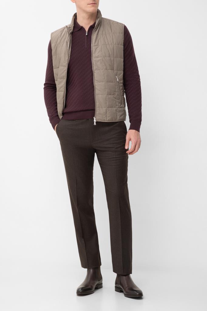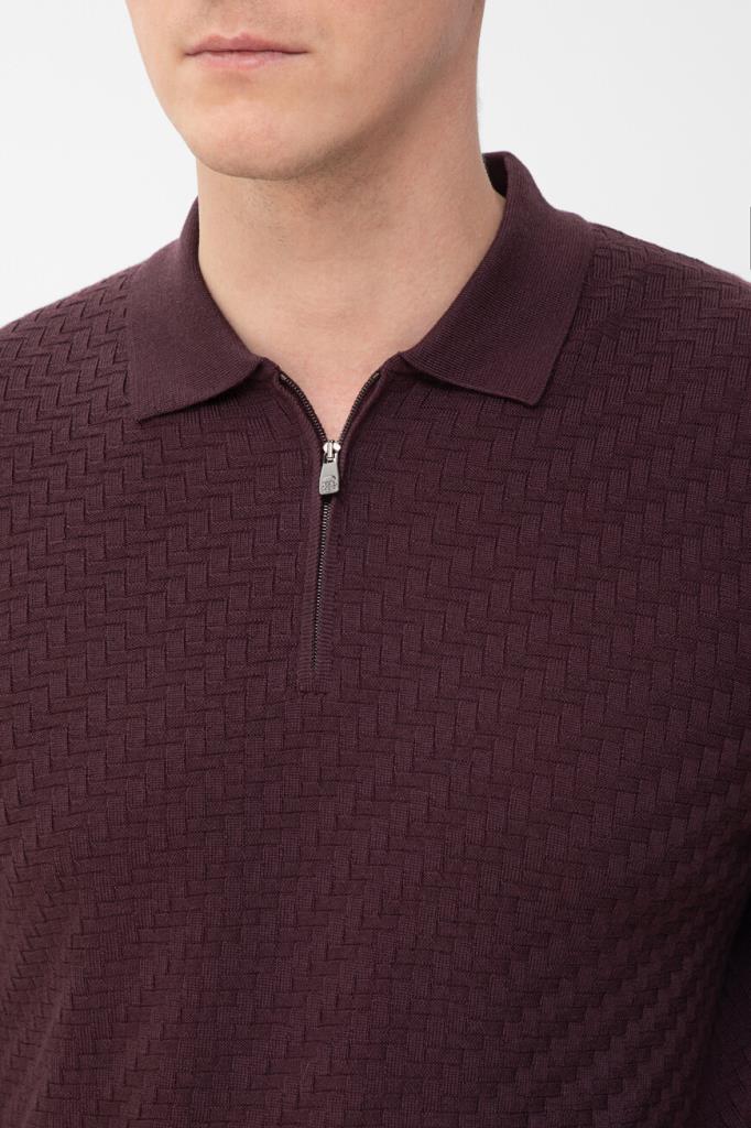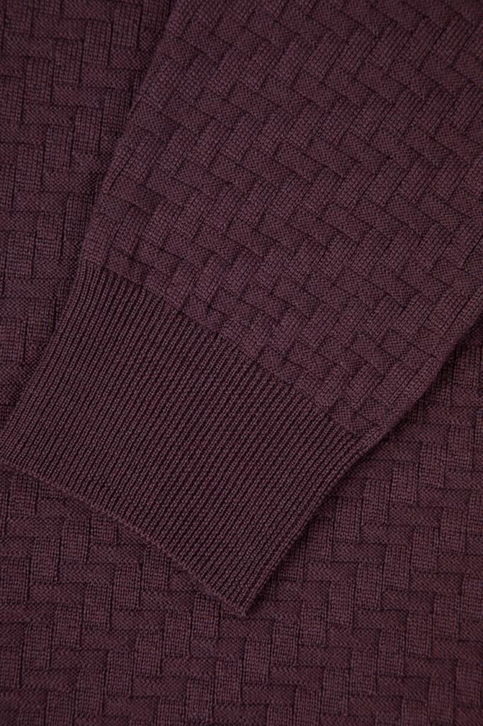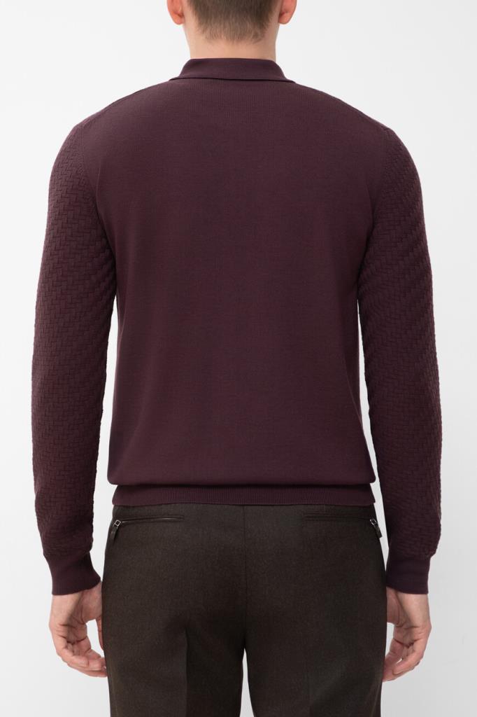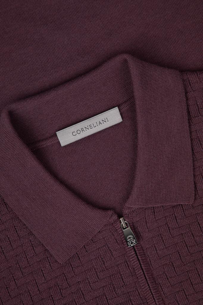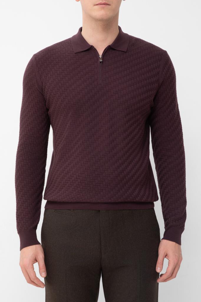 Полуприлегающее поло фиолетового оттенка от CORNELIANI. Фасон изделия из мягкой вирджинской шерсти предполагает наличие длинных рукавов и застёжку на короткую молнию сверху. Декором выступает фактурный геометрический мотив с эффектом плетения спереди и на рукавах в тон. Для создания органичного комплекта сочетайте модель с брюками с классическими стрелками из той же коллекции.