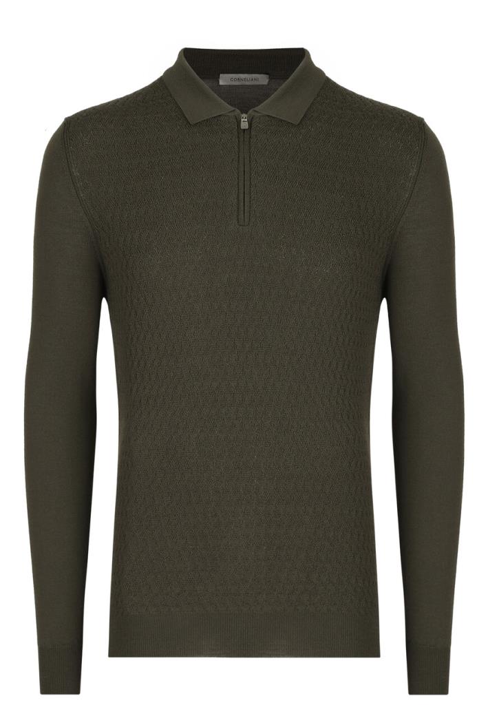 Пуловер Corneliani с фактурным орнаментом мастера бренда выполнили из тонкого трикотажа с шелковистым блеском. Модель прямого кроя с отложным воротником и зауженными манжетами идеально дополнит классический образ и станет незаменима в повседневном гардеробе.